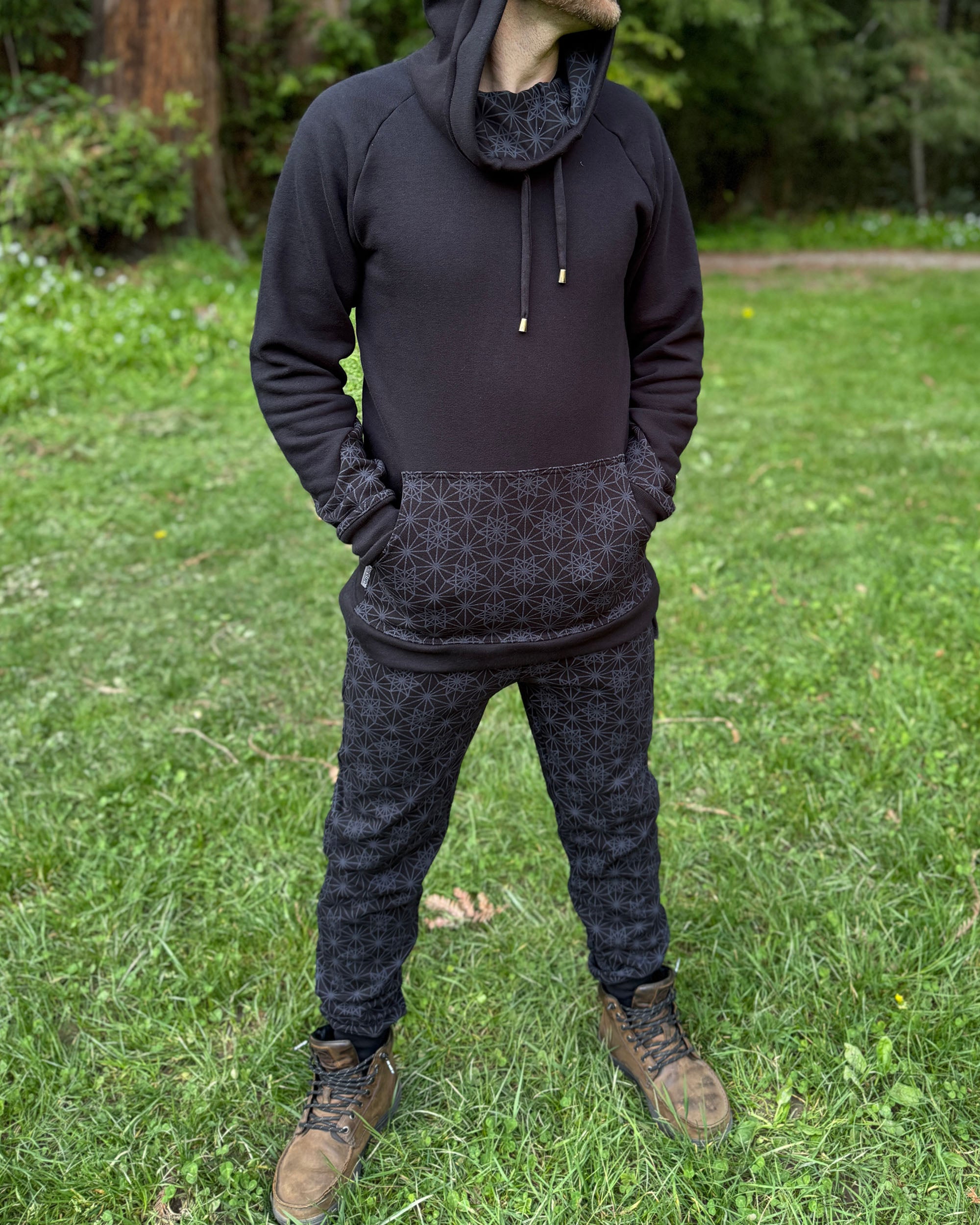 Portal Hoodie - Organic Cotton Mid-weight Extra Long Sacred Geometry Pullover - Patterned
