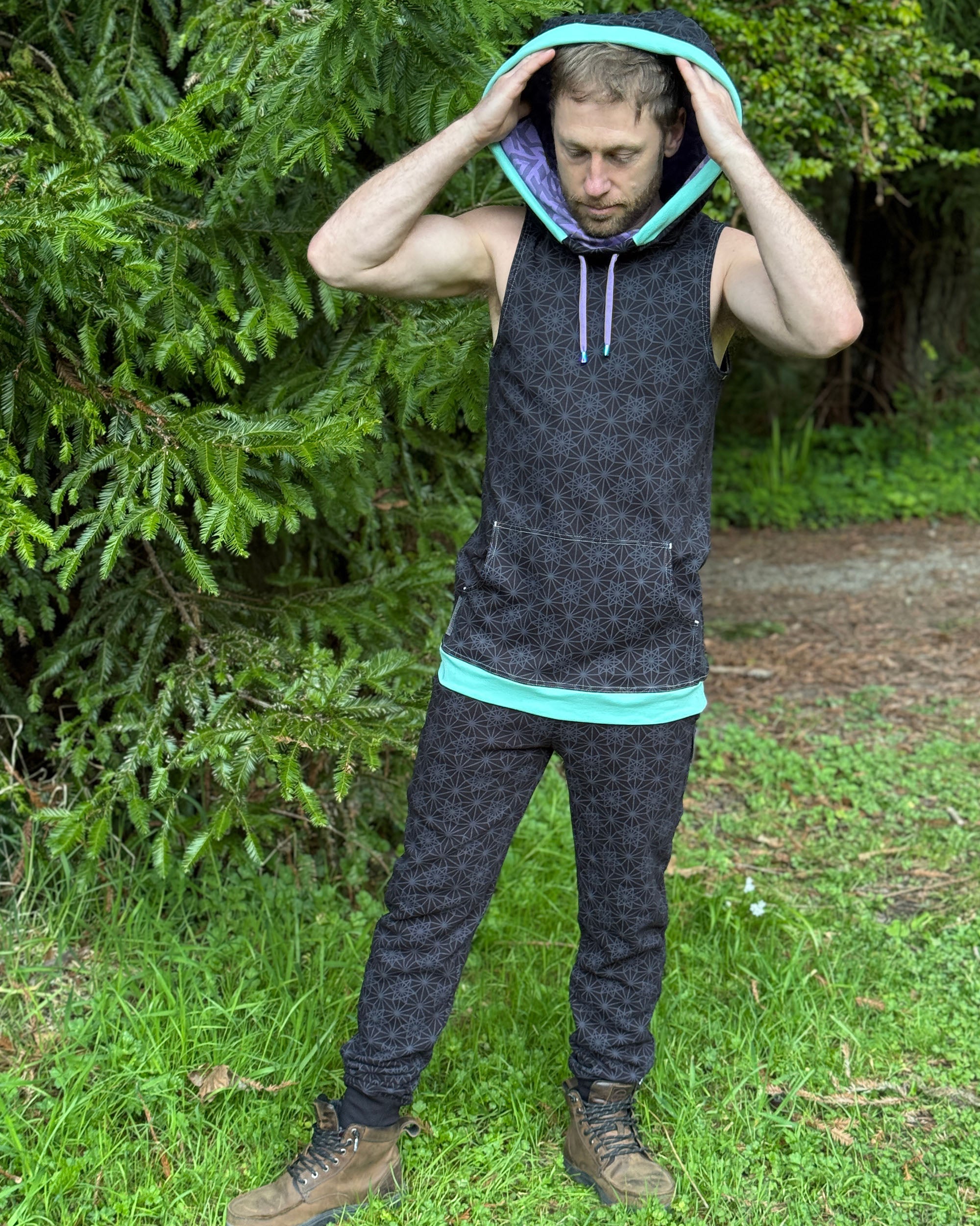 Portal Tank - Organic Cotton Mid-weight Sacred Geometry Sleeveless Hoodie - Patterned
