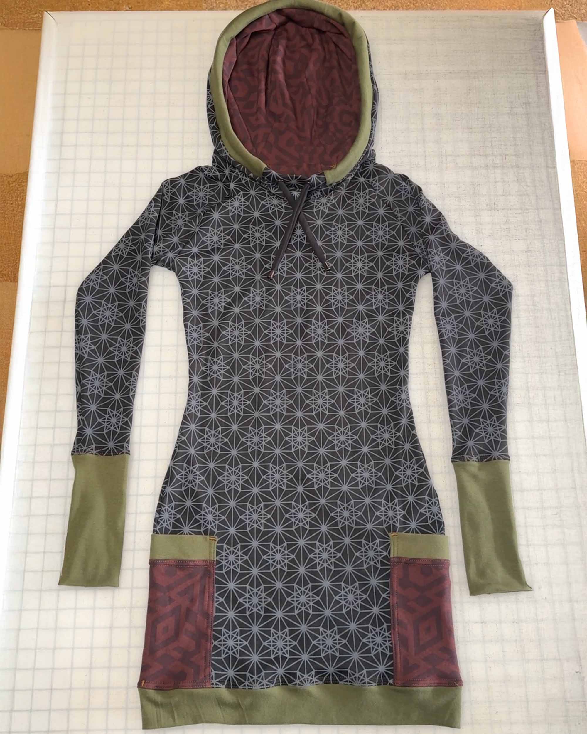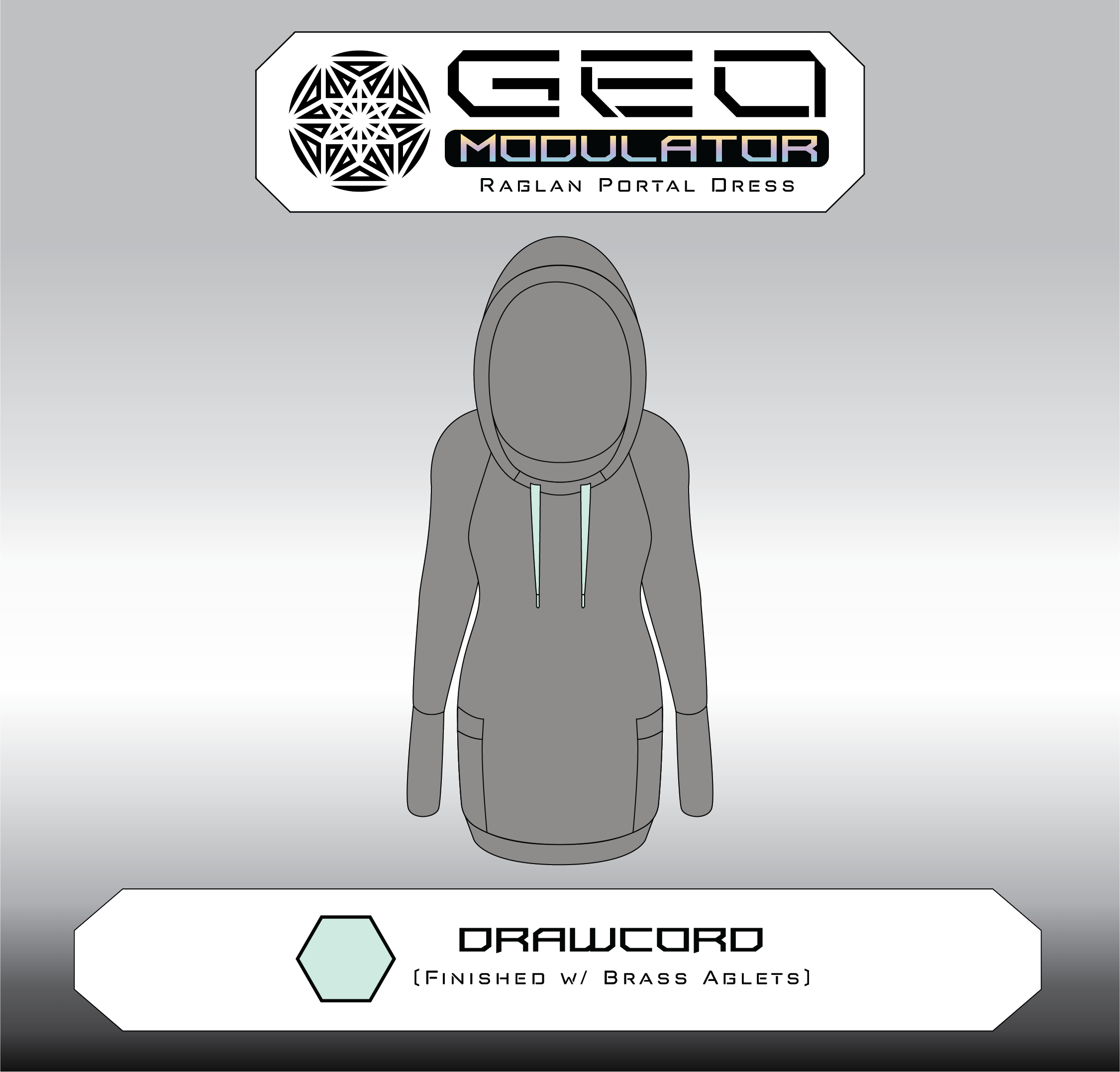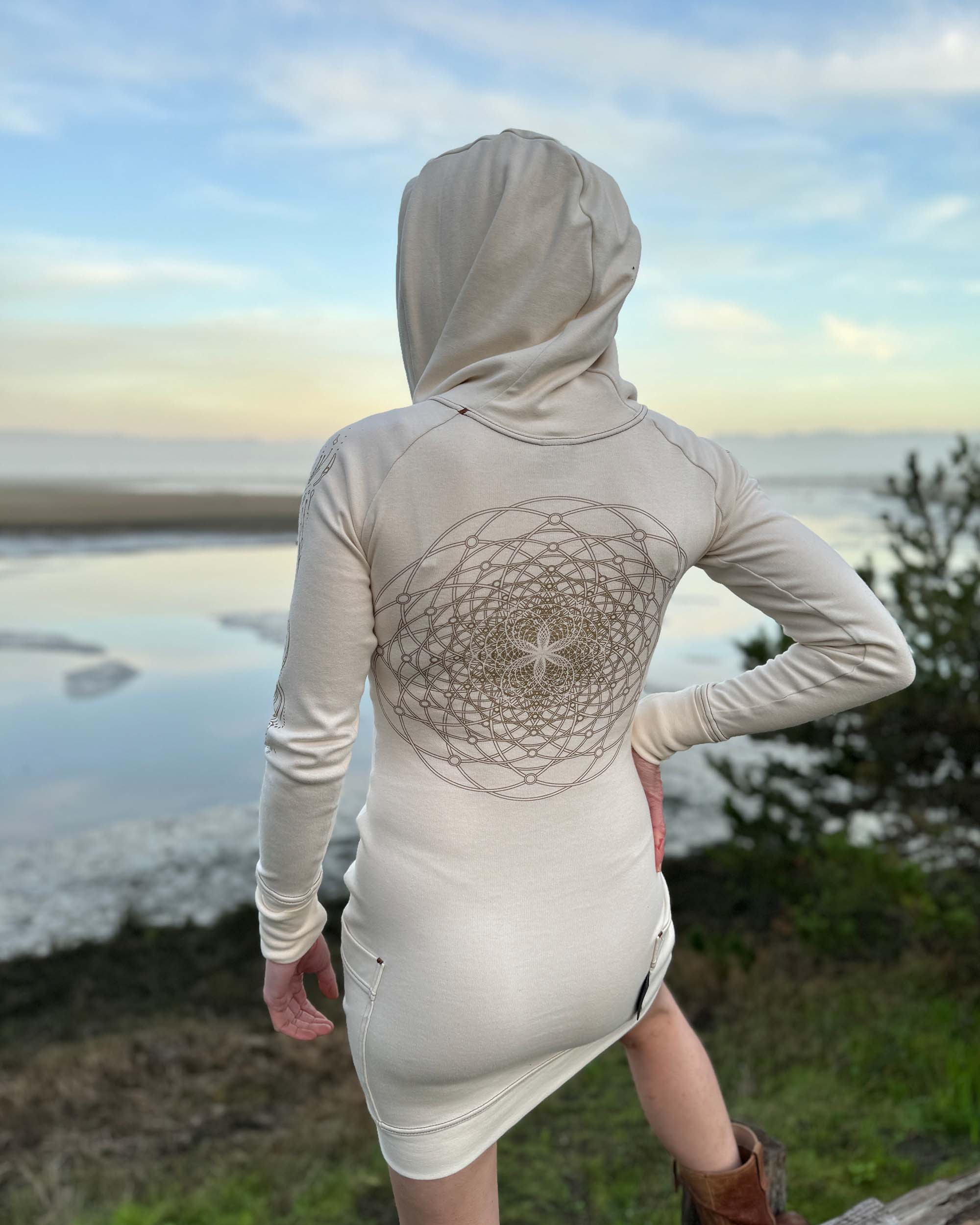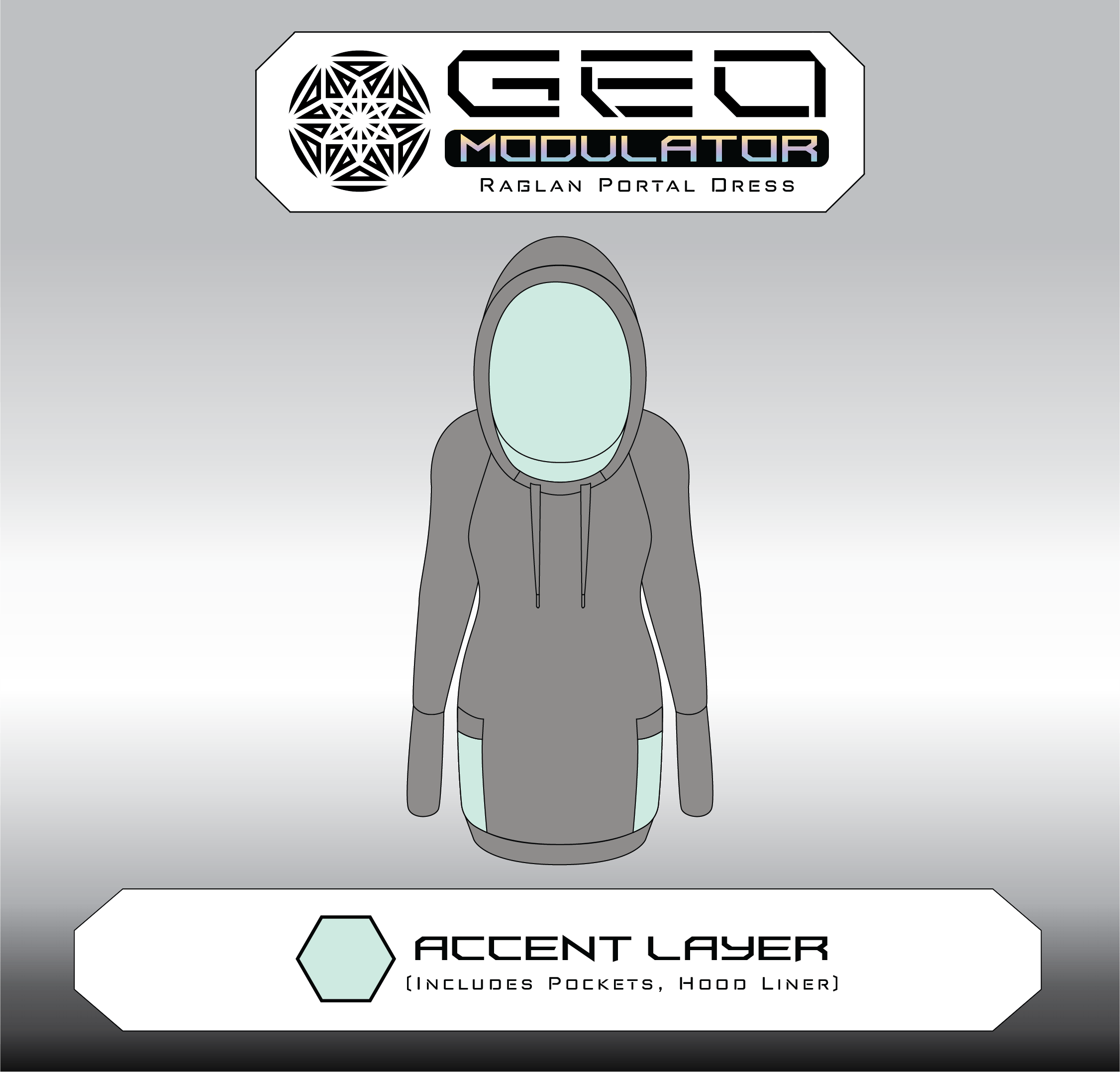 The Geo Modulator is your One of A Kind Garment Customizer. Edit and customize this fitted tunic dress with a cowl hood made in our 100% organic cotton interlock jersey knit fabric. Style with solids and geometric fabrics, screen prints, drawcords and extra add-ons. Build your dream Portal Dress today.