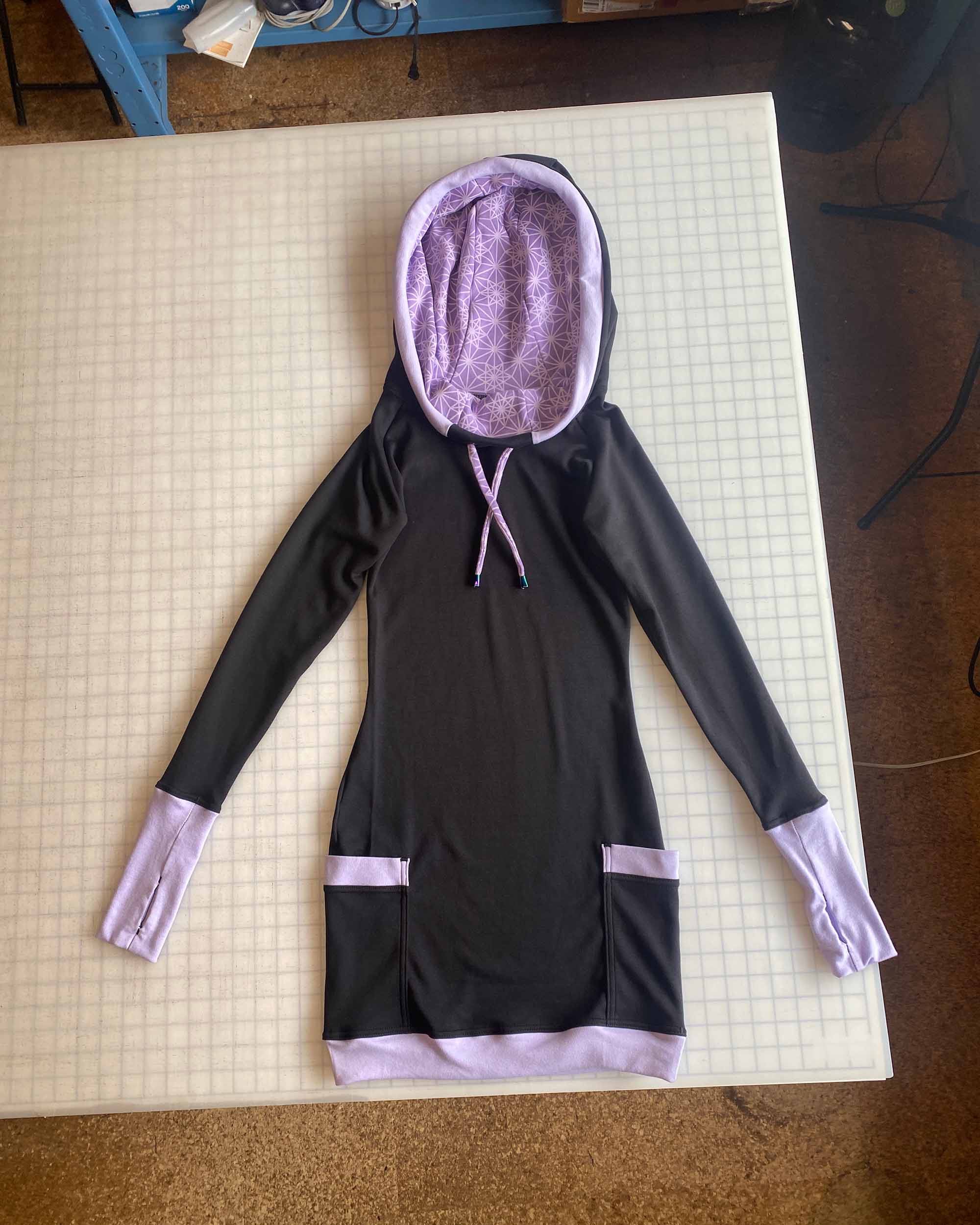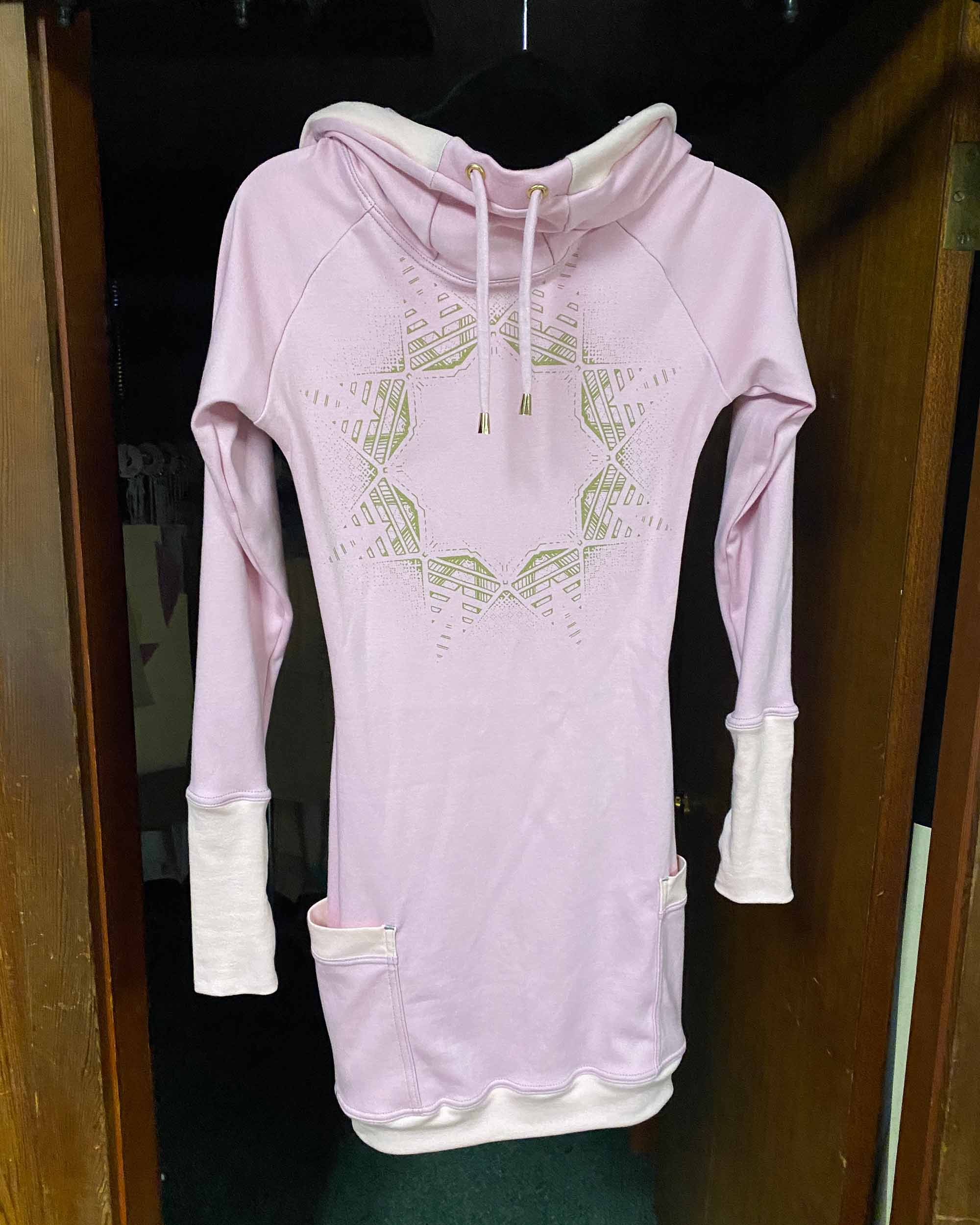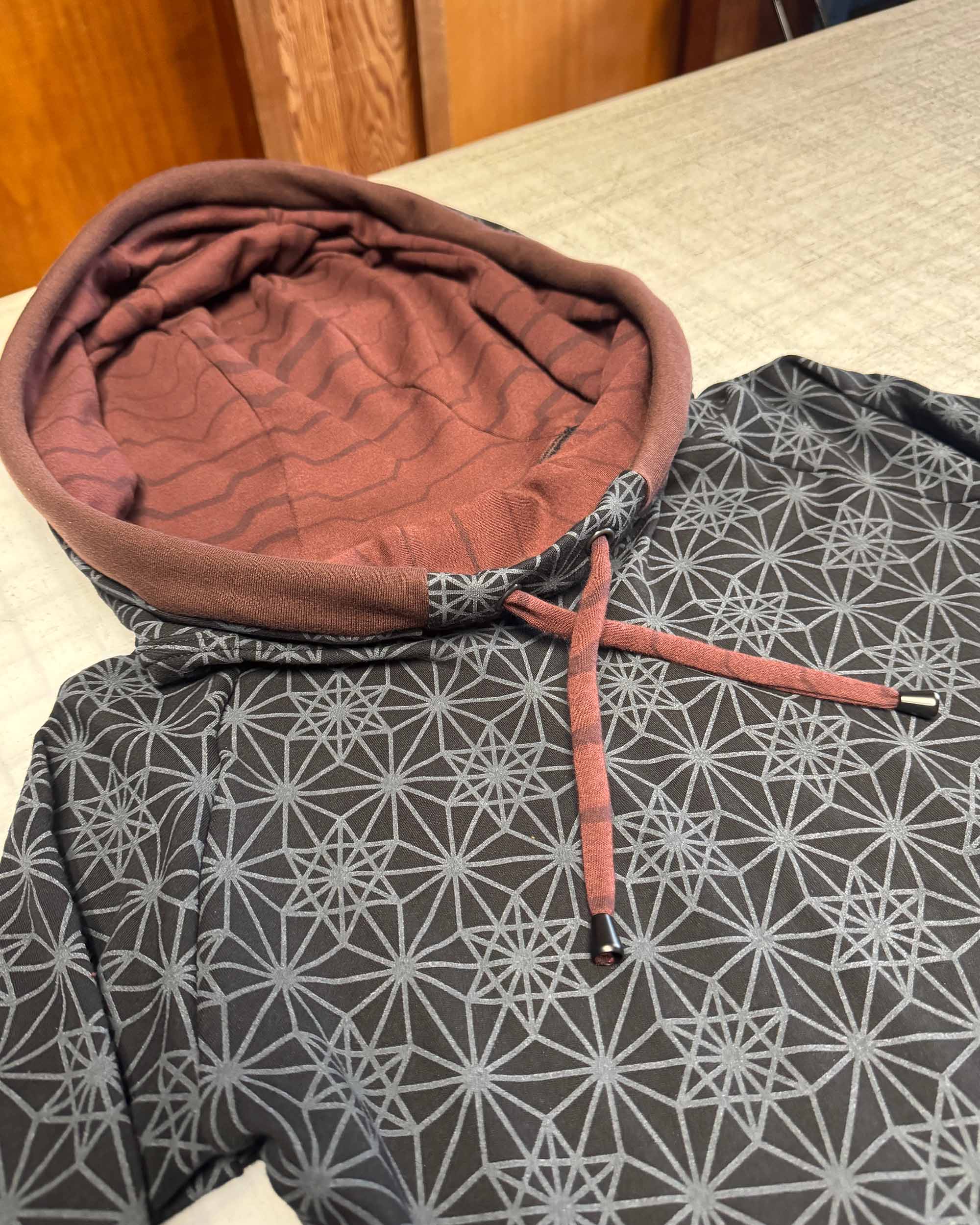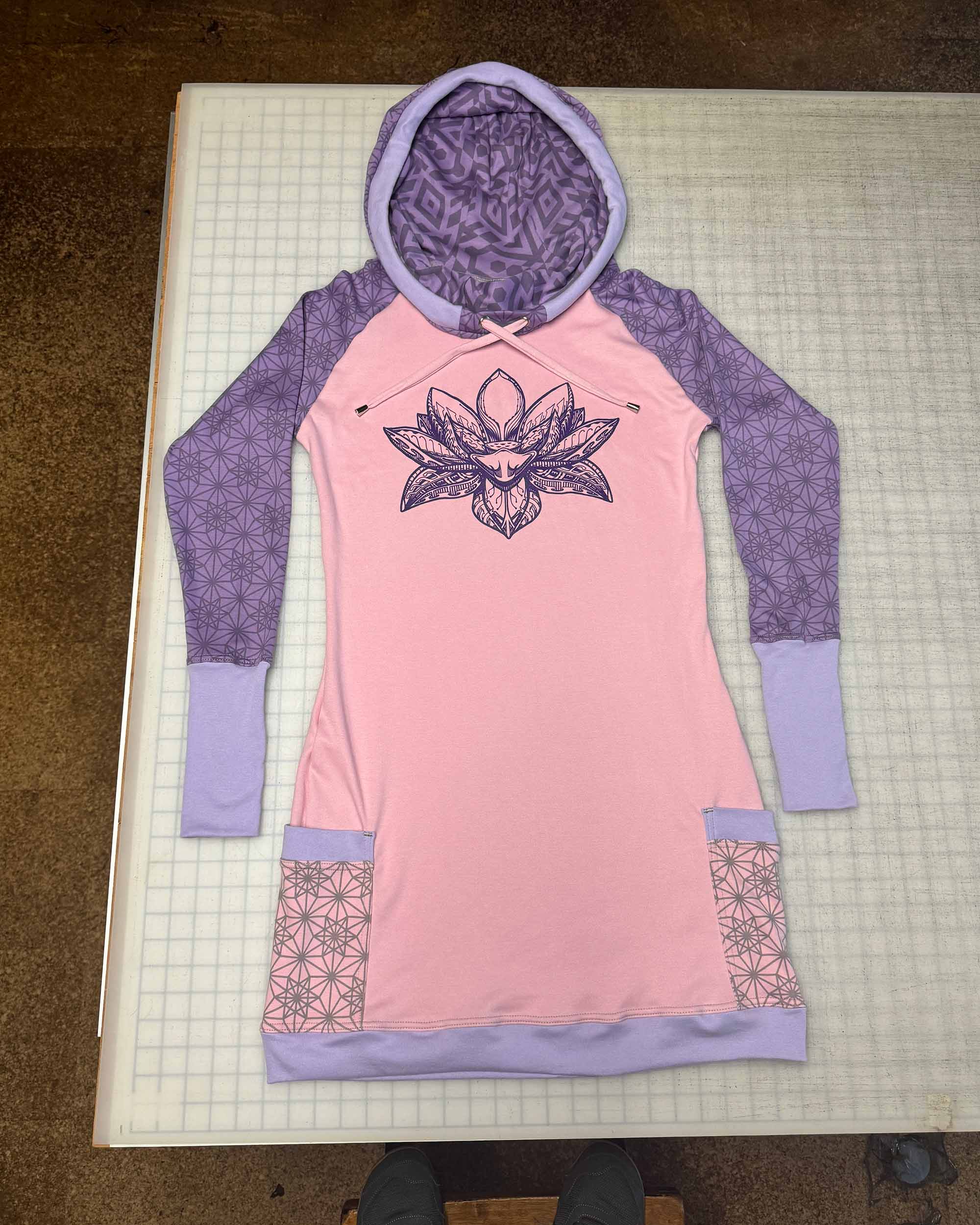 The Geo Modulator is your One of A Kind Garment Customizer. Edit and customize this fitted tunic dress with a cowl hood made in our 100% organic cotton interlock jersey knit fabric. Style with solids and geometric fabrics, screen prints, drawcords and extra add-ons. Build your dream Portal Dress today.