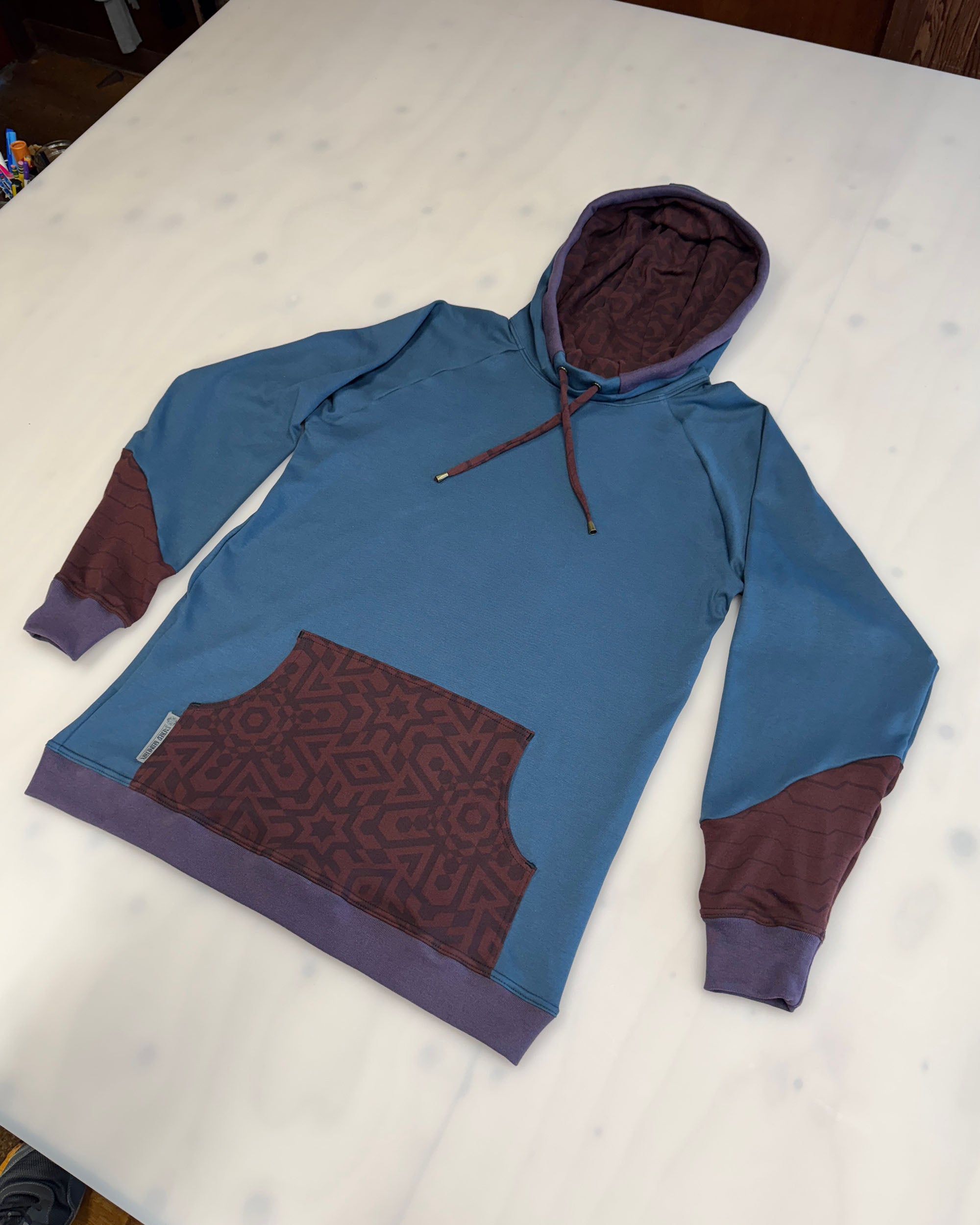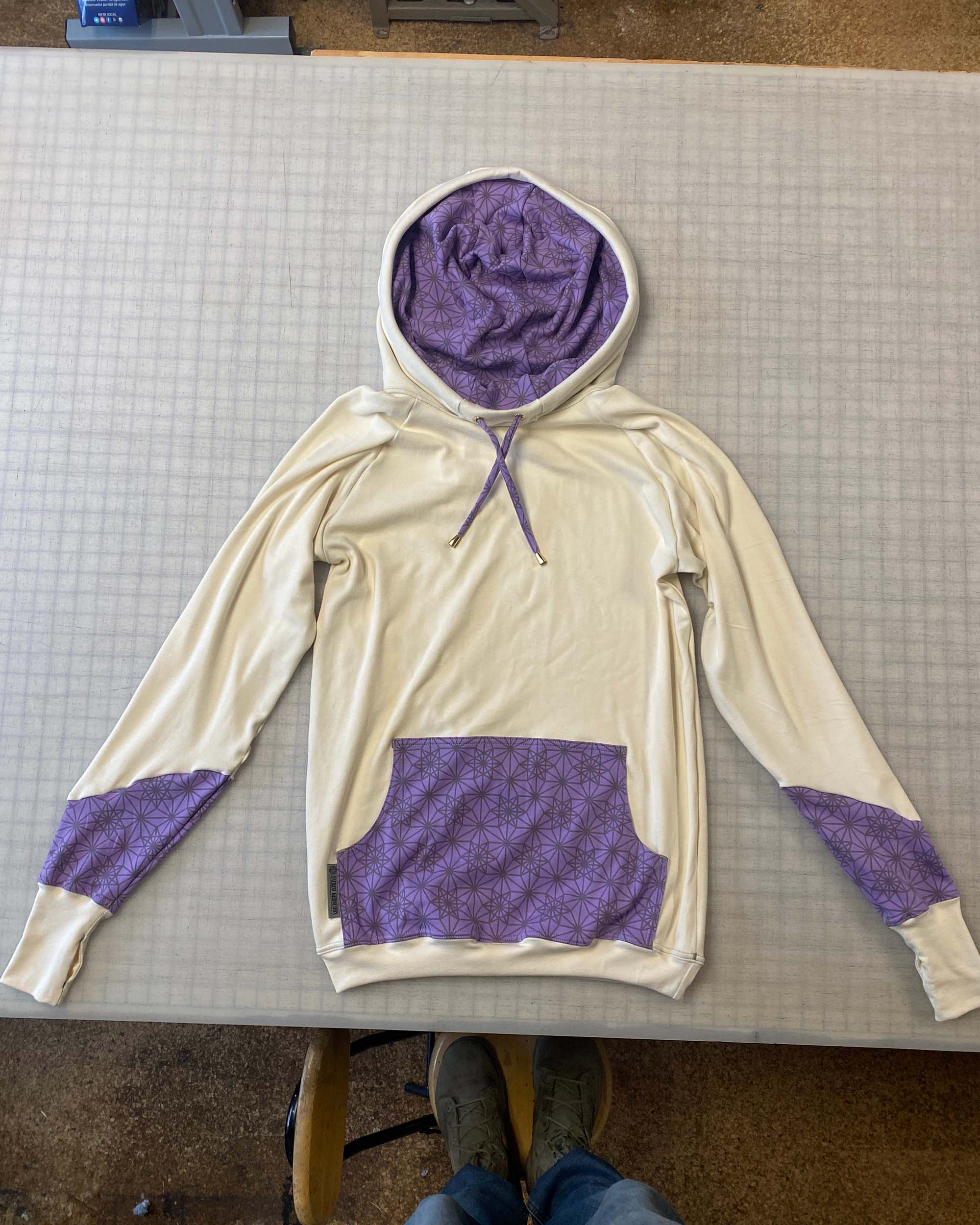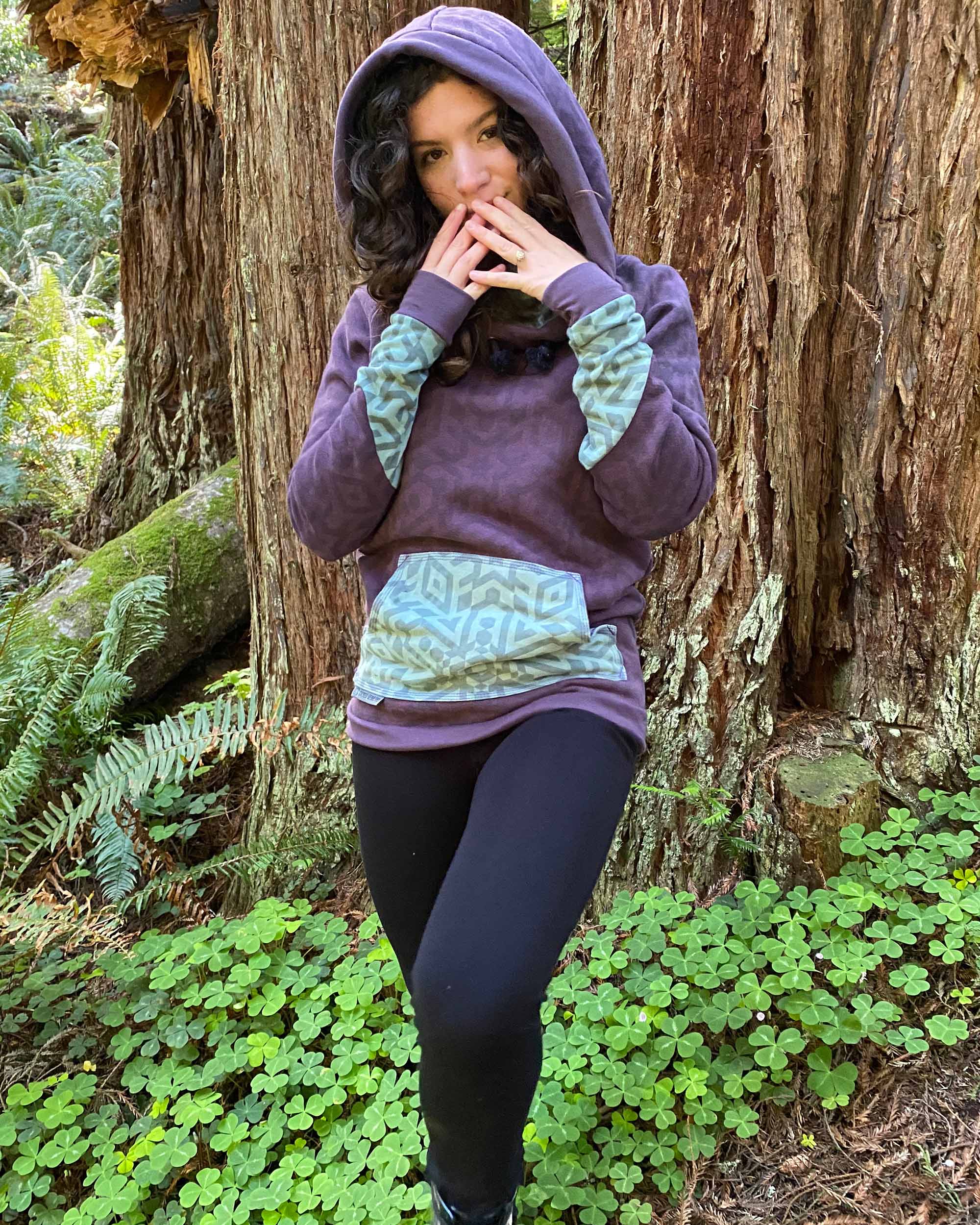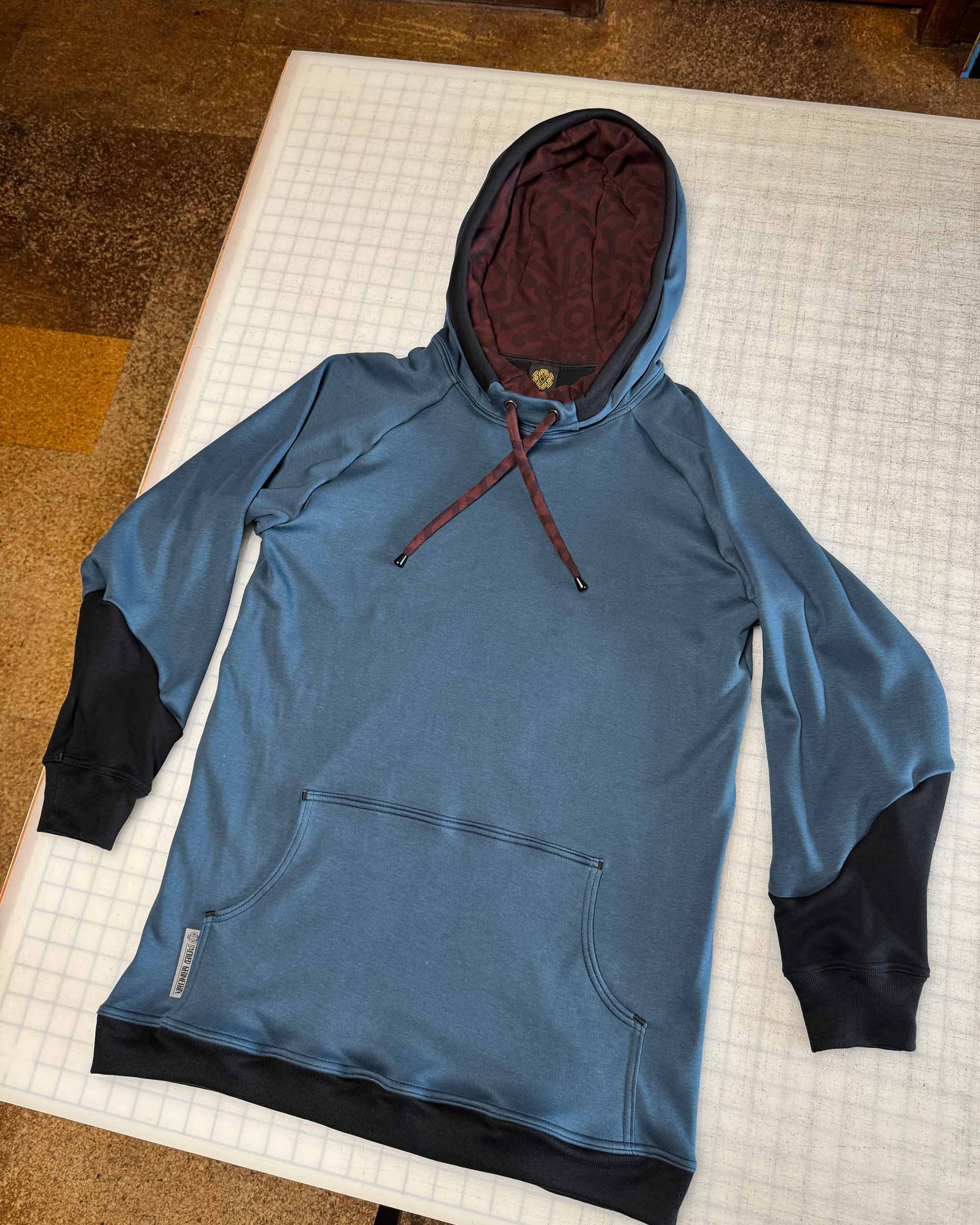 The Geo Modulator is your One of A Kind Garment Customizer. Edit and customize this long bodied cowl hood pullover made in our 100% organic cotton interlock jersey knit fabric. Style with solids and geometric fabrics, screen prints, drawcords and extra add-ons. Build your dream Portal Hoodie today.