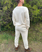 This 100% organic cotton lounge set is the combination of our crew neck long sleeve shirt and Geo Joggers. Now available in 6 different Pure colors. Each garment is made in our soft medium weight interlock jersey knit fabric, making it perfect for everyday loungewear, keeping you comfortable in a variety of climates.