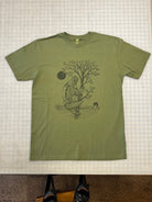 This Tee shirt was inspired by my travels to Costa Rica in 2016. Seeing a three toed Sloth hanging upside down in a tree that was growing out of sand on a tropical beach was unforgettable. The Sloth, for me (and I'm sure many would agree), is the spirit of the Trees in animal form. My intention for this drawing was to create an intergalactic Sloth capable of inner stellar space travel, and also a homely image that encapsulates the aesthetic beauty of trees. The Slothstronaut was born! This astronaut sloth is a Terra Former! He grows tree seeds in his back pack on the strap, if you look close you can see the little sprouts in the capsules. This Slothstronaut is inspecting his work on a new extraterrestrial landscape. The Pyramids in the background are the space ships that he rode in on. He uses the antennae on his back pack to beam in and out to check up on his work and make sure the fresh land is growing habitat for all the variety of species that depend on the rainforests.