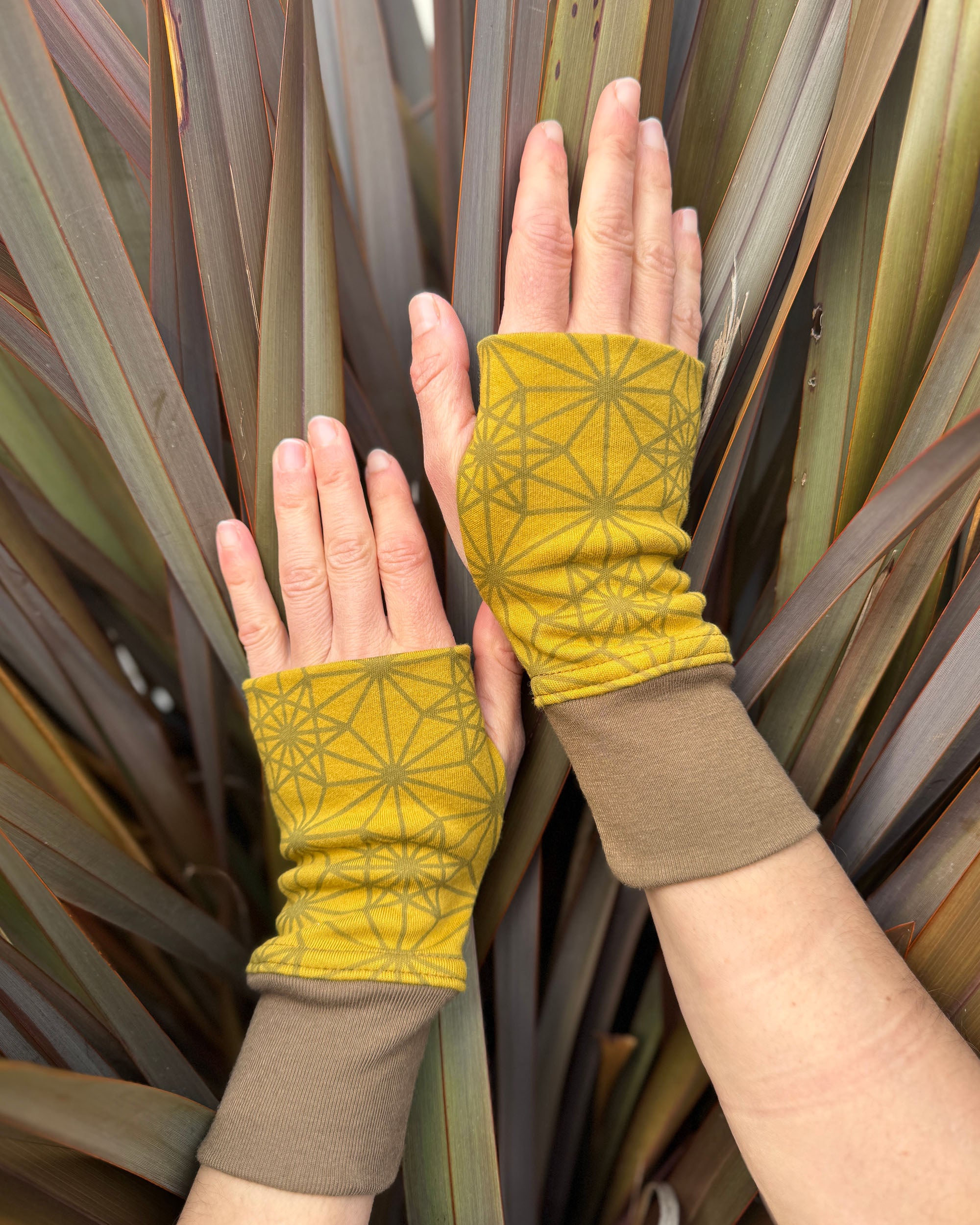 Geo Hand Warmers - Organic Cotton Fingerless Gloves - Patterned