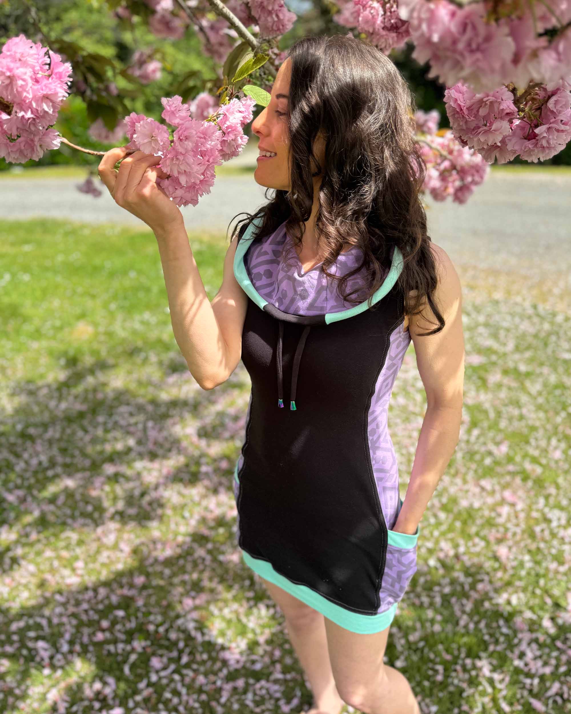 Made in 100% Organic Cotton, The Sleeveless Side Panel Portal Dress has two side panel accents and two pockets, plus a soft interior hood liner. Perfect for festivals and your favorite concert events.