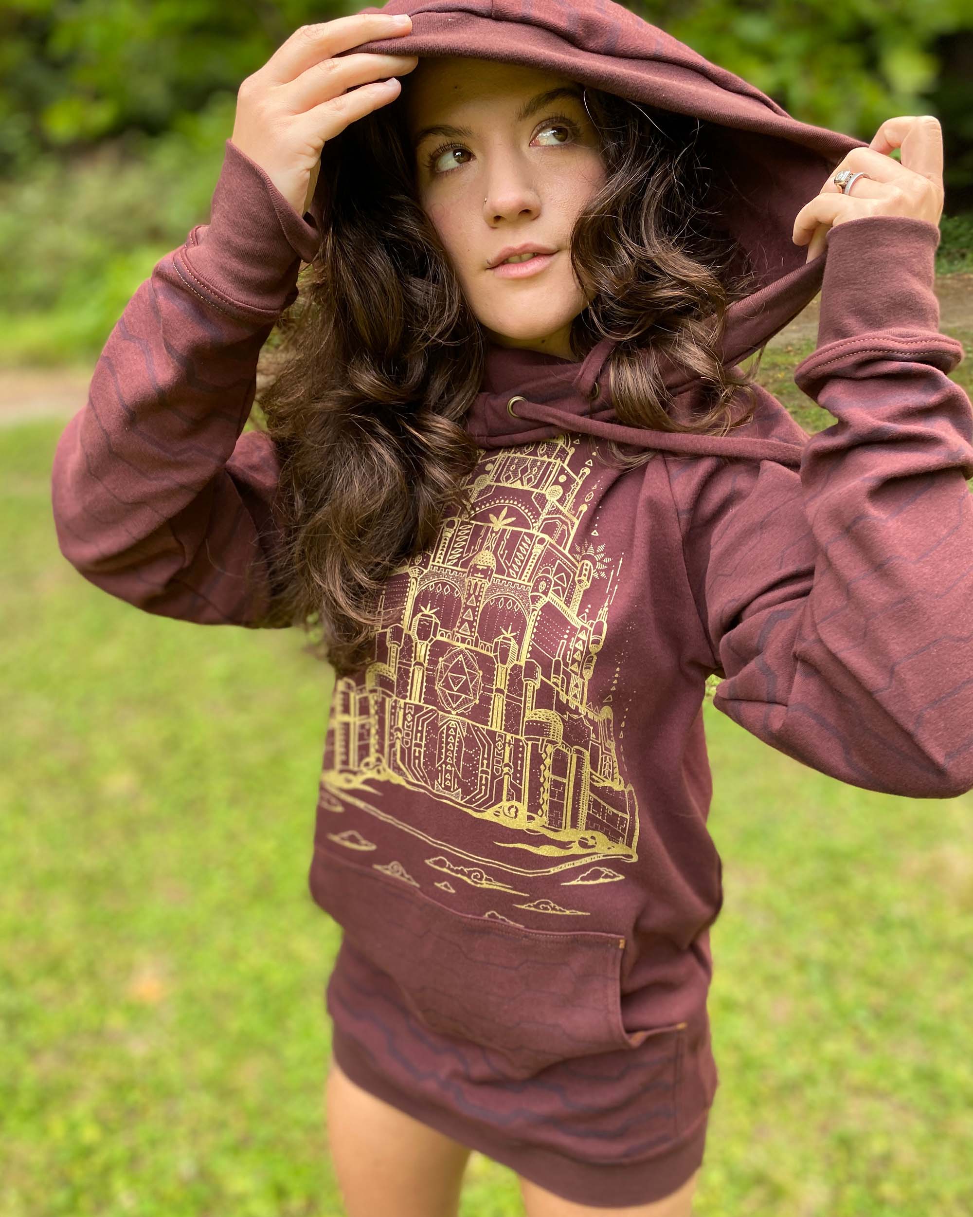 Portal Hoodie - Organic Cotton Mid-weight Extra Long Pullover - Printed