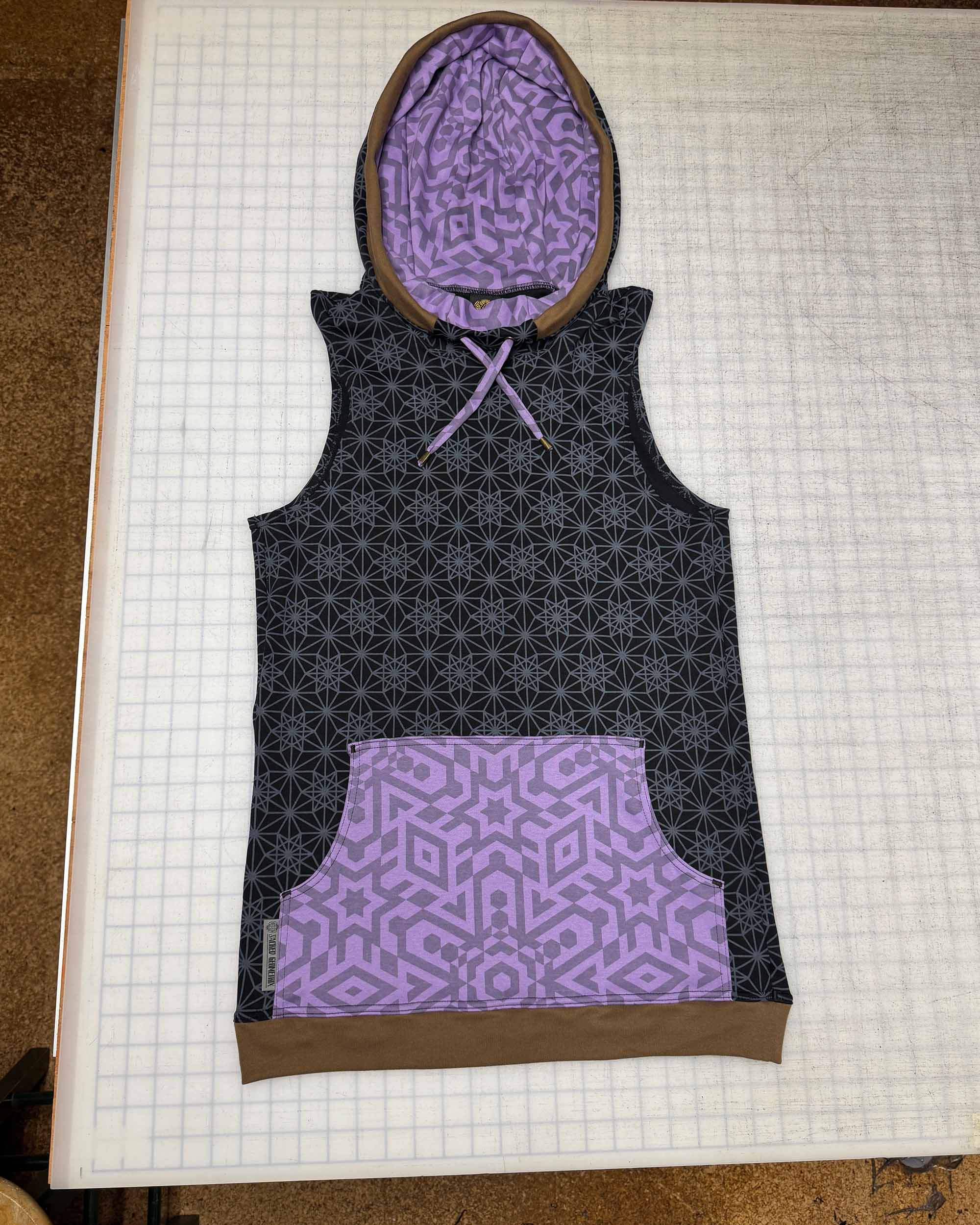 Made with 100% organic cotton, The Portal Tank is an extra long unisex sleeveless hoodie. With water based sacred geometry printed fabrics, this cowl hooded tank top is our premium style for the festival late night dance scene.