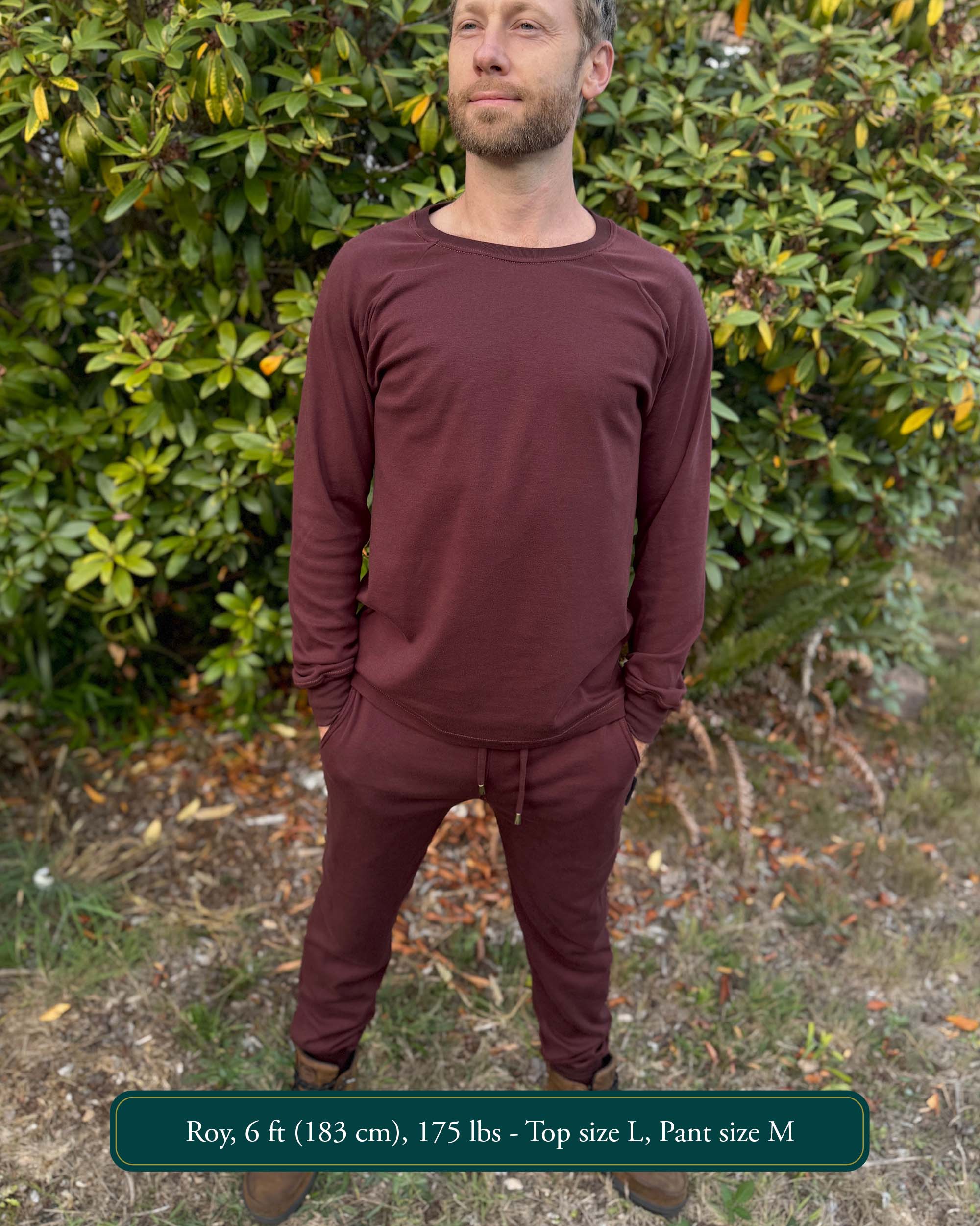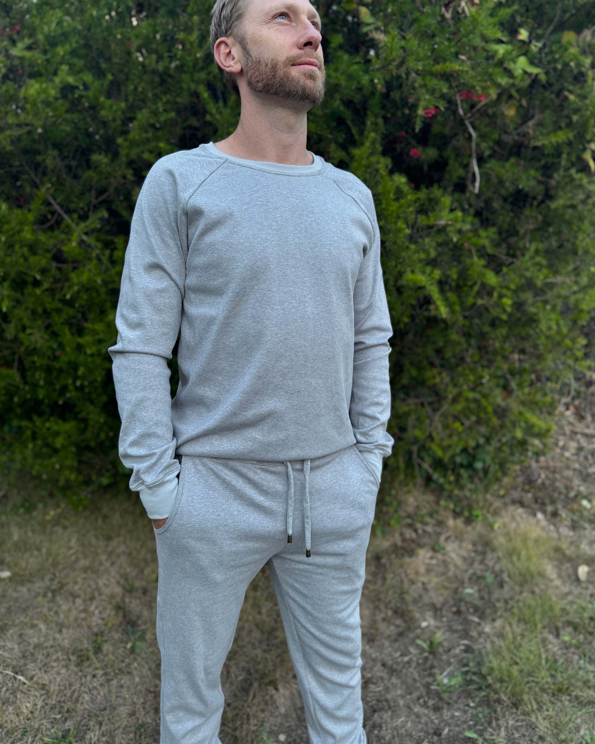 This 100% organic cotton lounge set is the combination of our crew neck long sleeve shirt and Geo Joggers.  Now available in 6 different Pure colors.  Each garment is made in our soft medium weight interlock jersey knit fabric, making it perfect for everyday loungewear, keeping you comfortable in a variety of climates.
