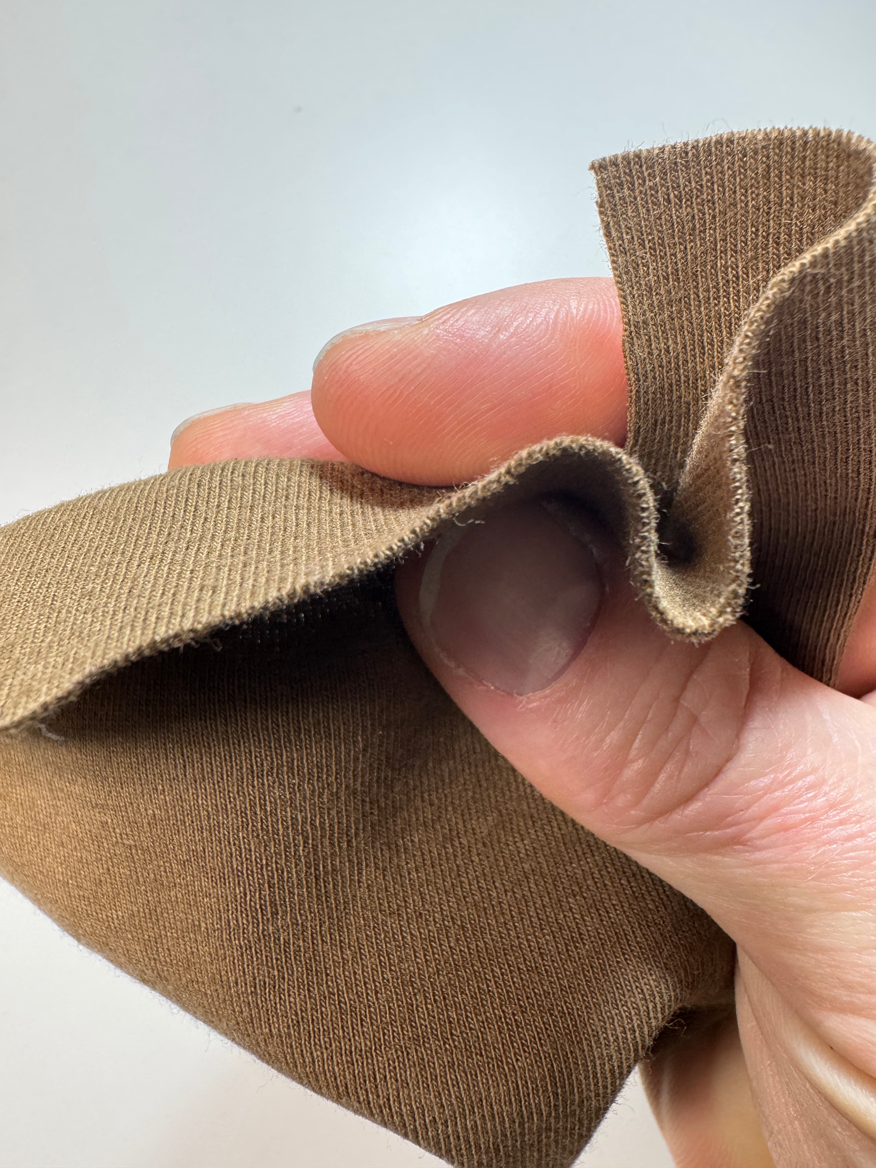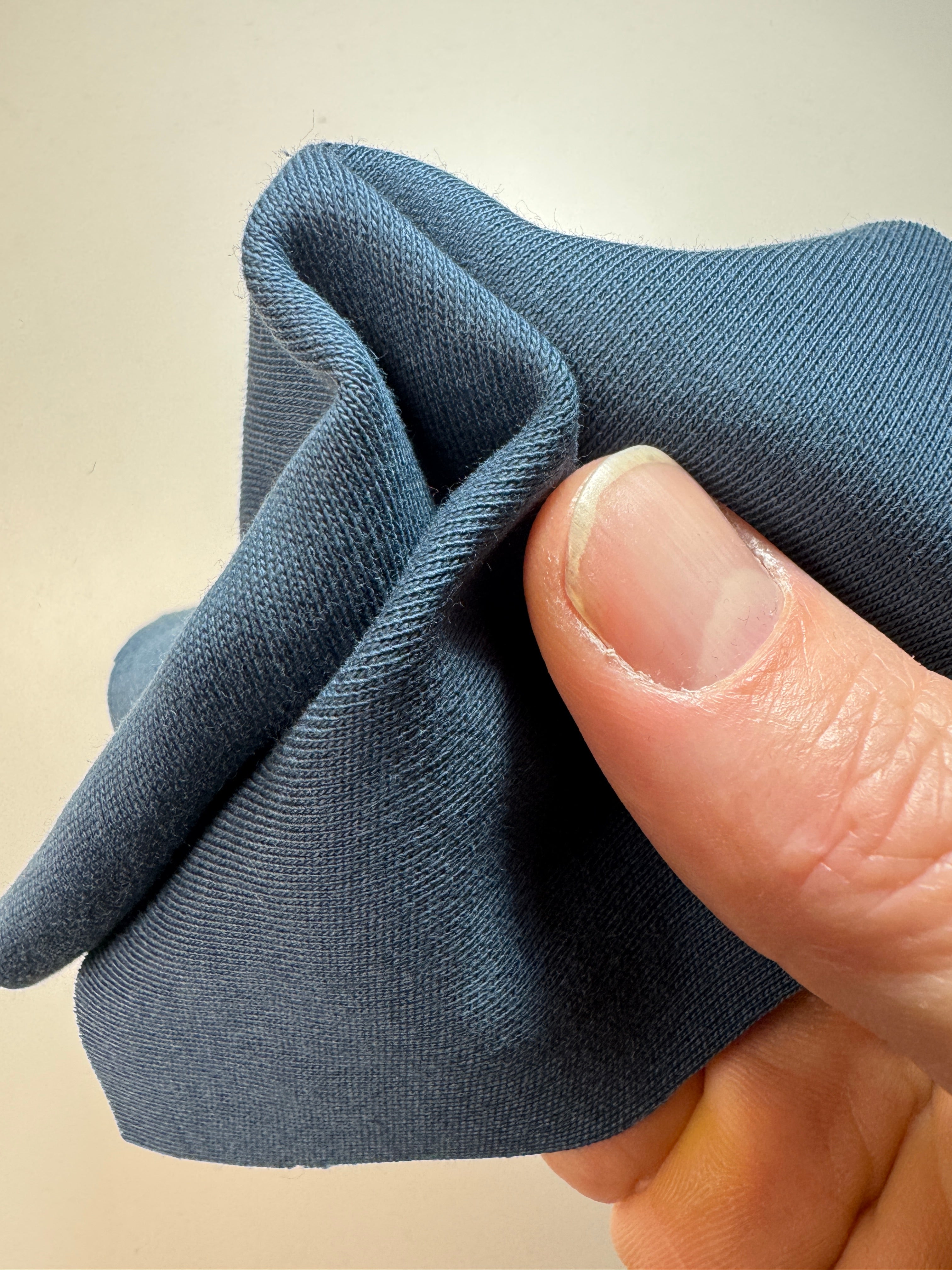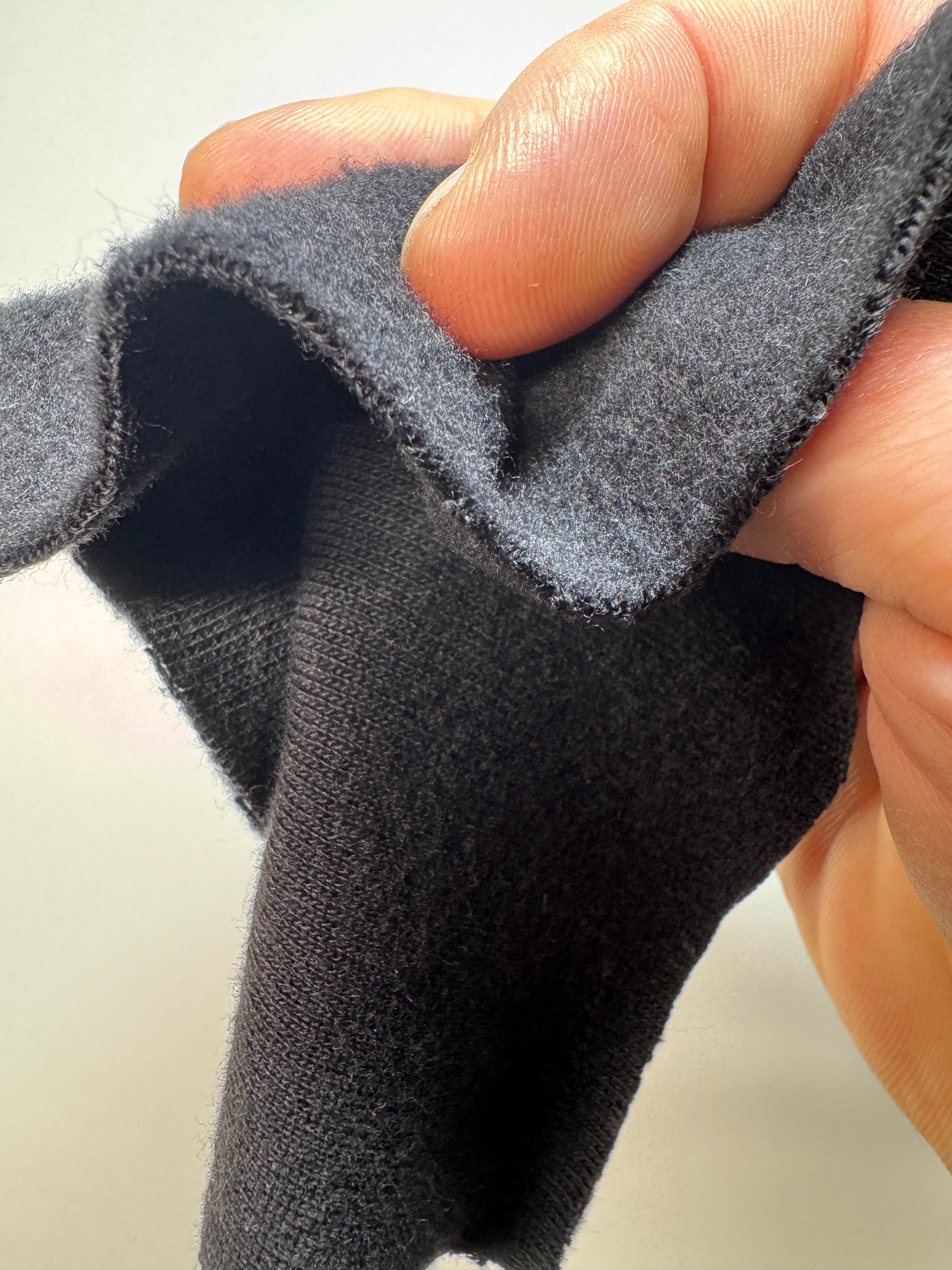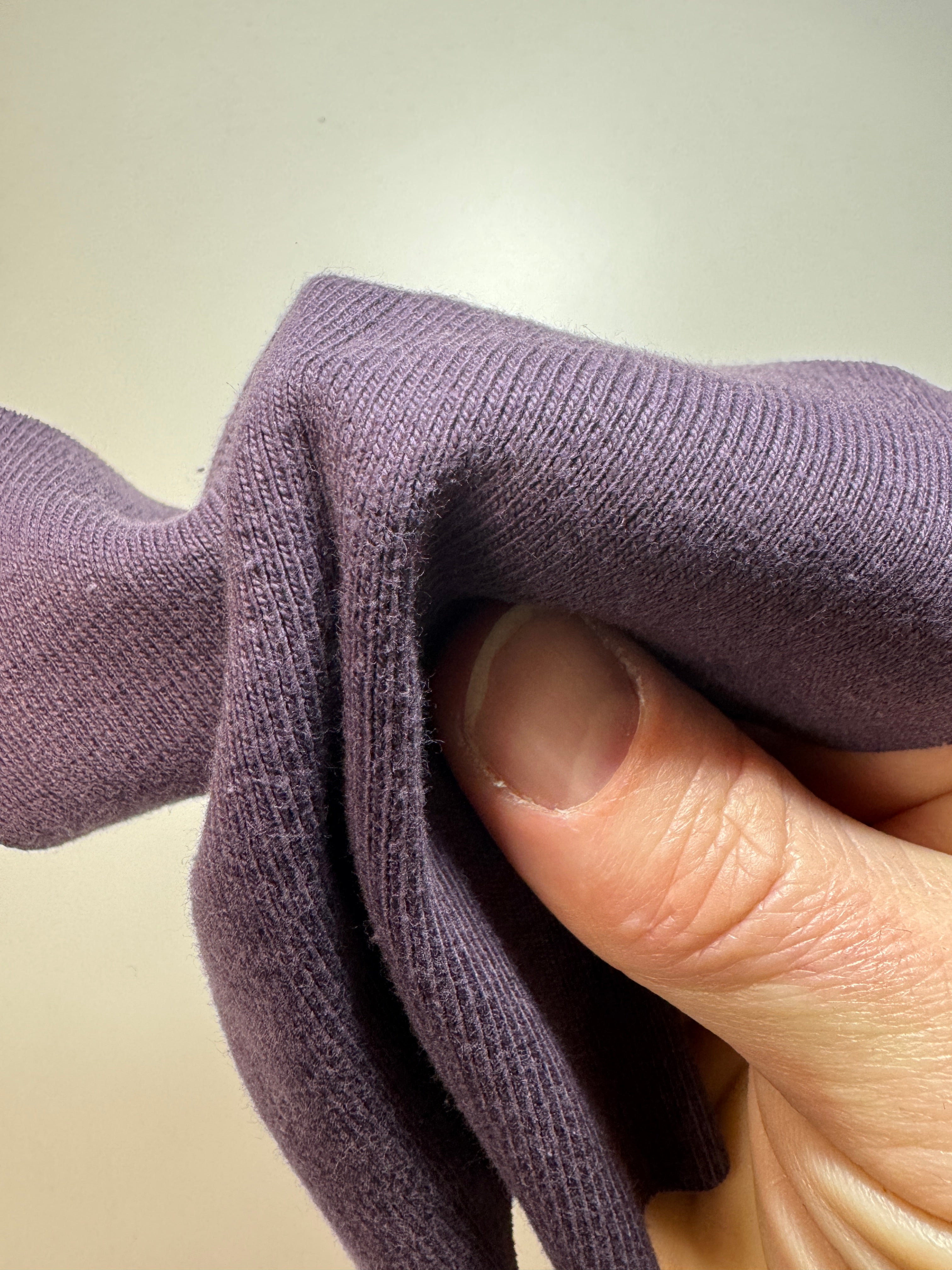 - Hand Feel: Soft on both sides, slightly ribbed when stretched