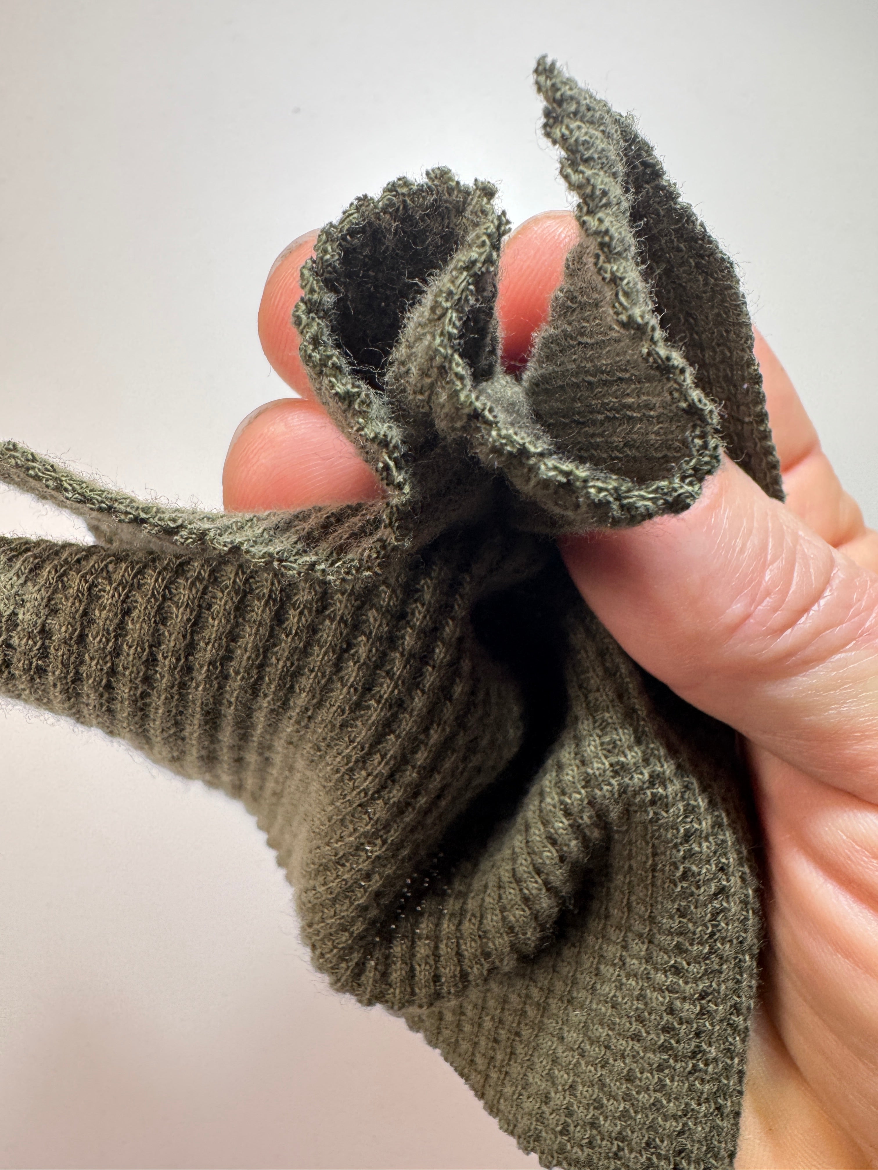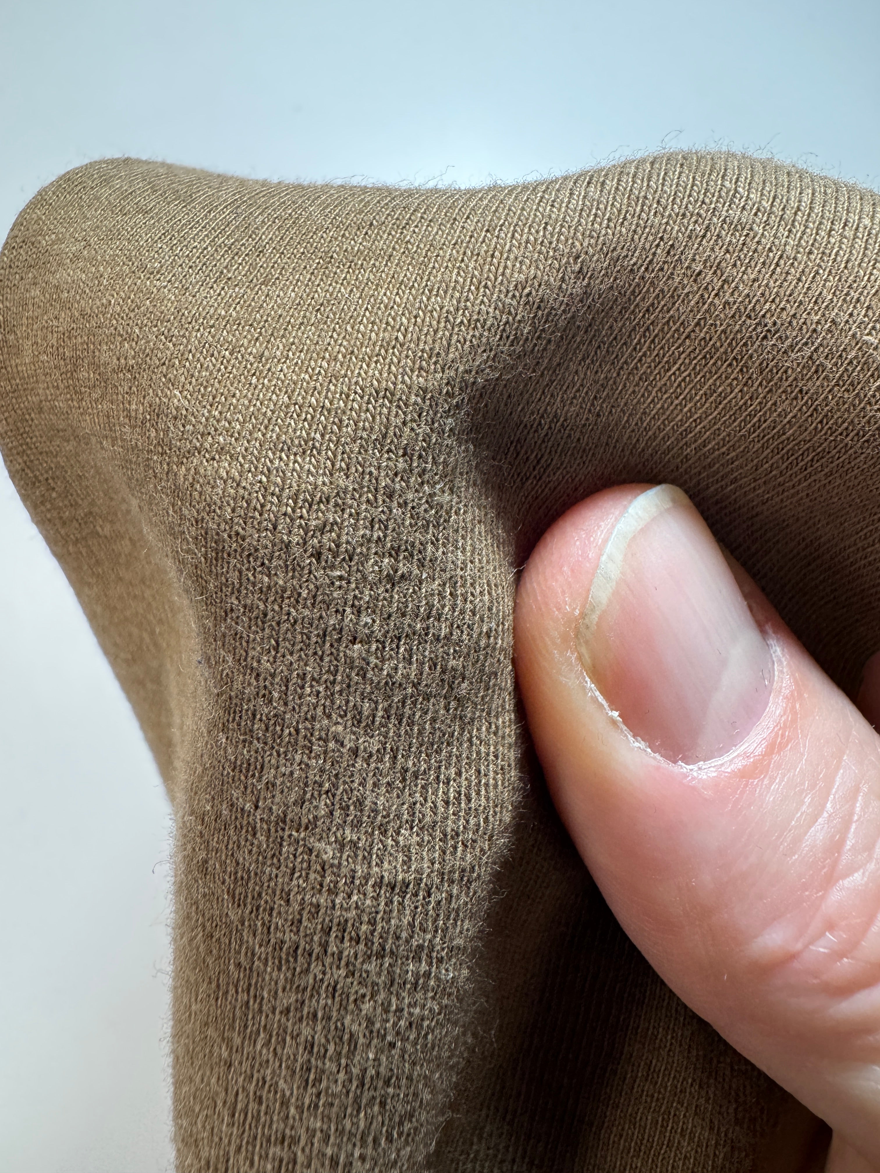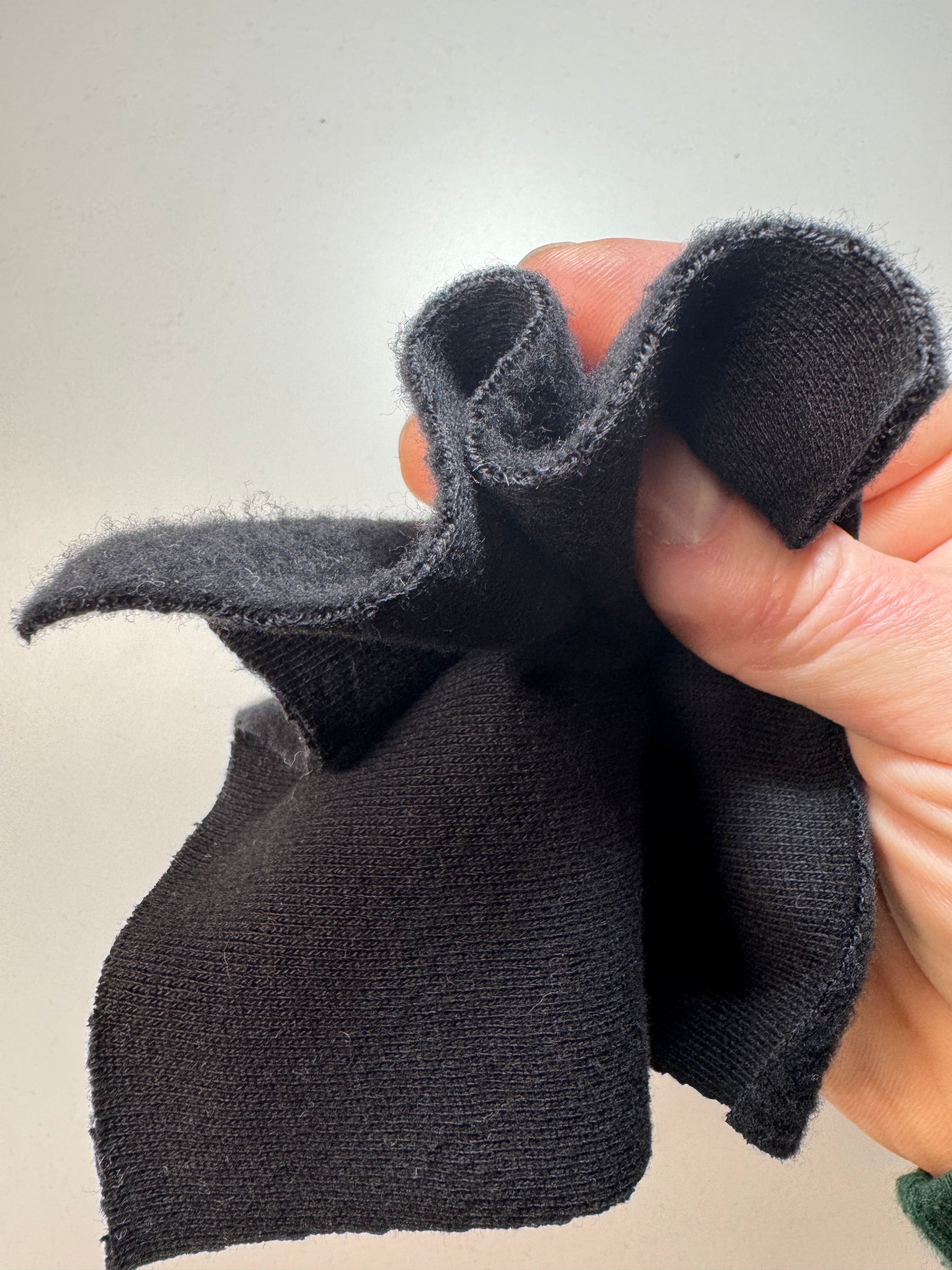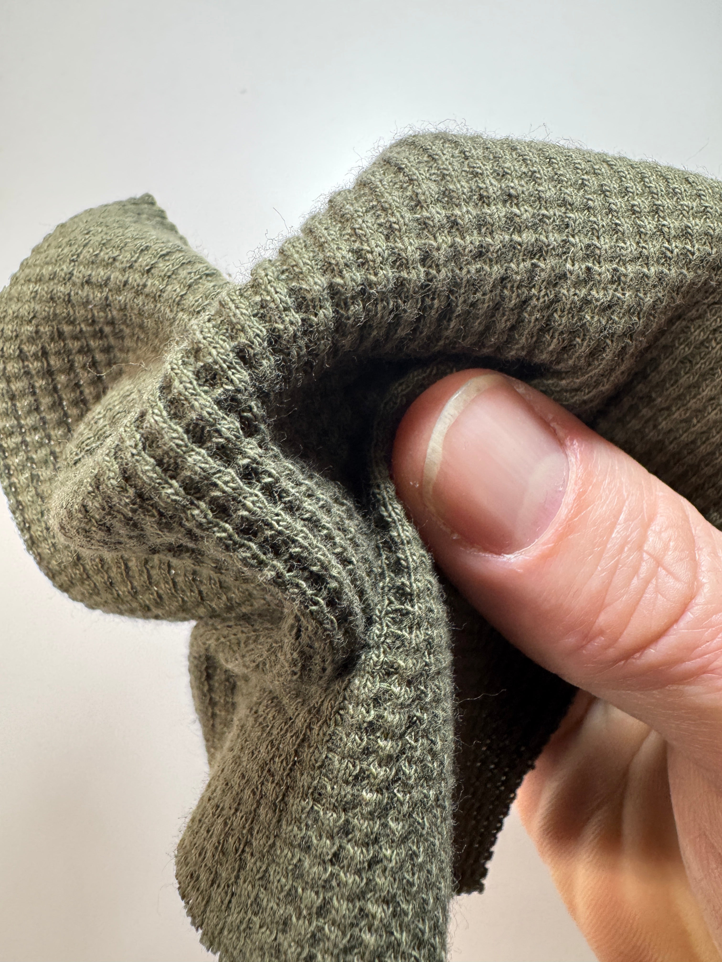 - Hand Feel: Soft on both sides, slightly ribbed when stretched