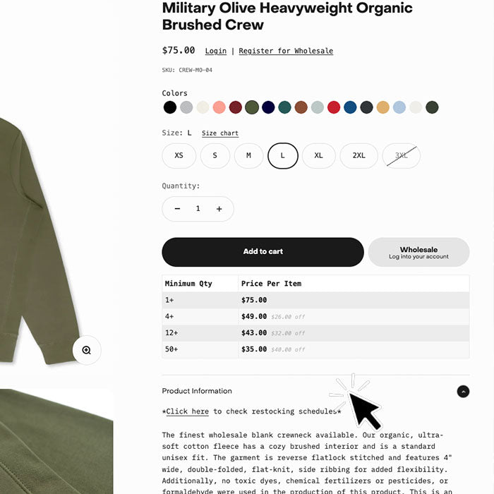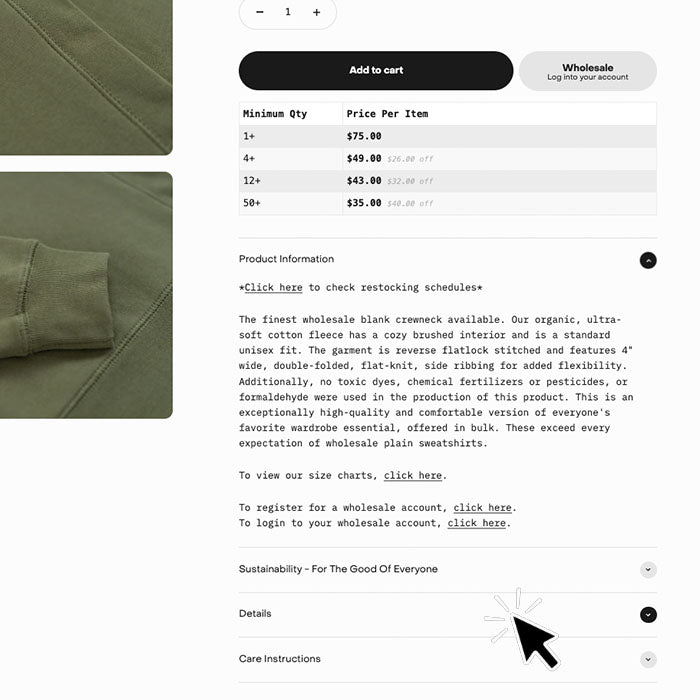 At Sacred Geometrix we have a simple solution: show our garments material content in the product description tab, thats always visible - no clicks needed.