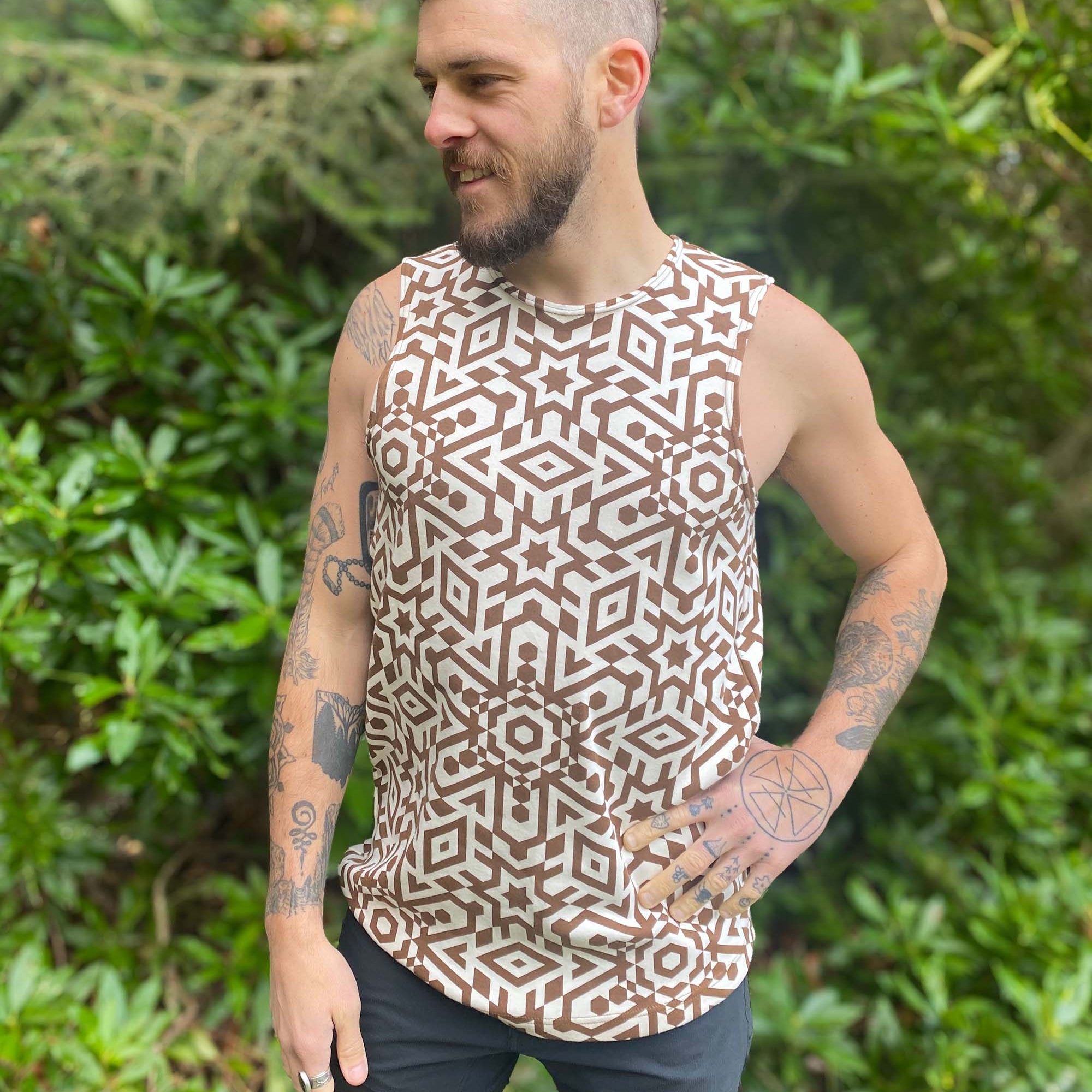Made in 100% Organic Cotton, The Essential Tank is a wide shoulder polyester-free tank top perfect for all your favorite activities. These patterned tank tops are decorated with water based screen printed sacred geometry designs.