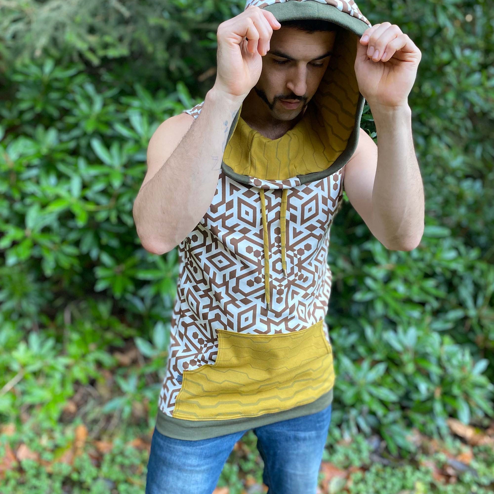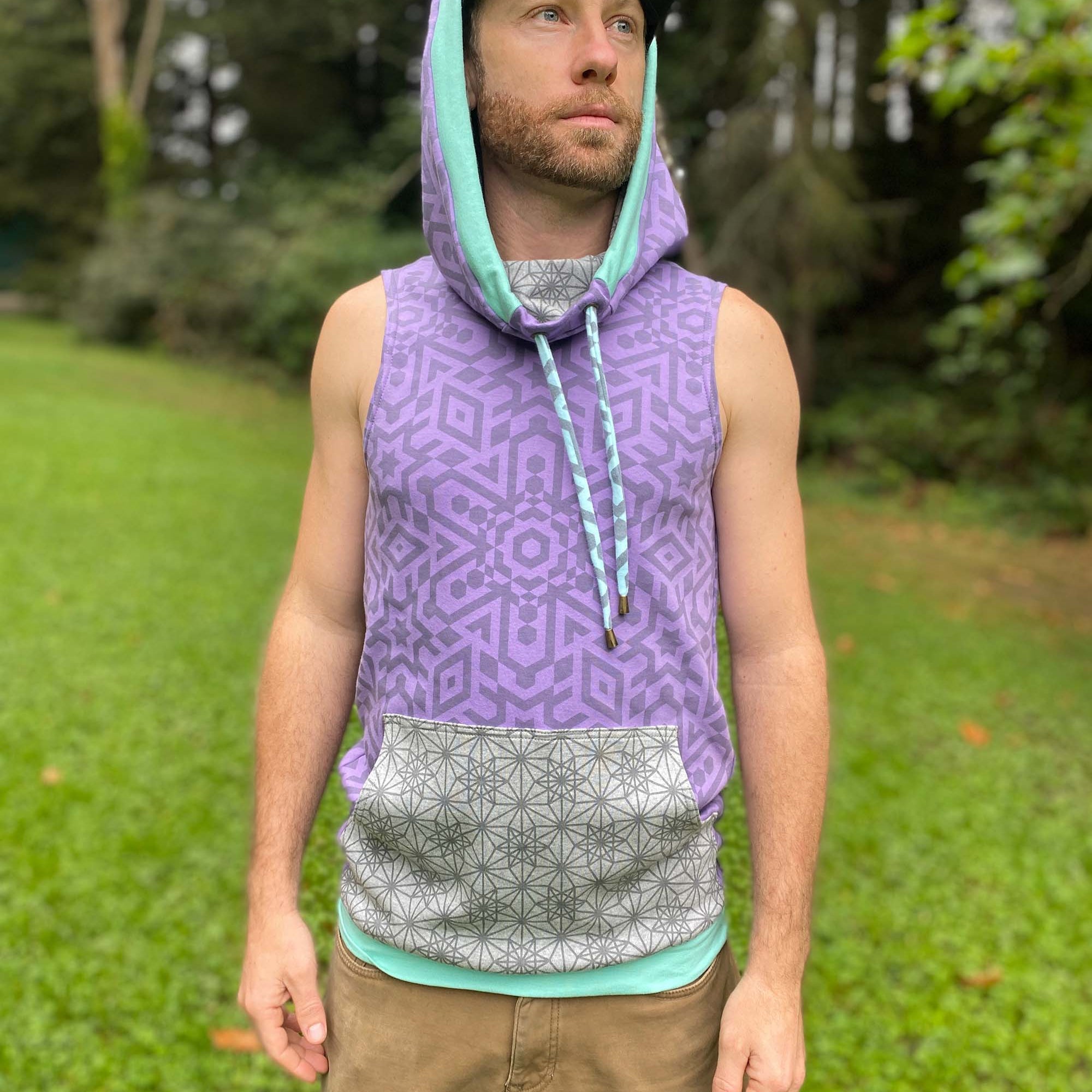 Portal Tank - Organic Cotton Mid-weight Sacred Geometry Sleeveless Hoodie - Patterned
