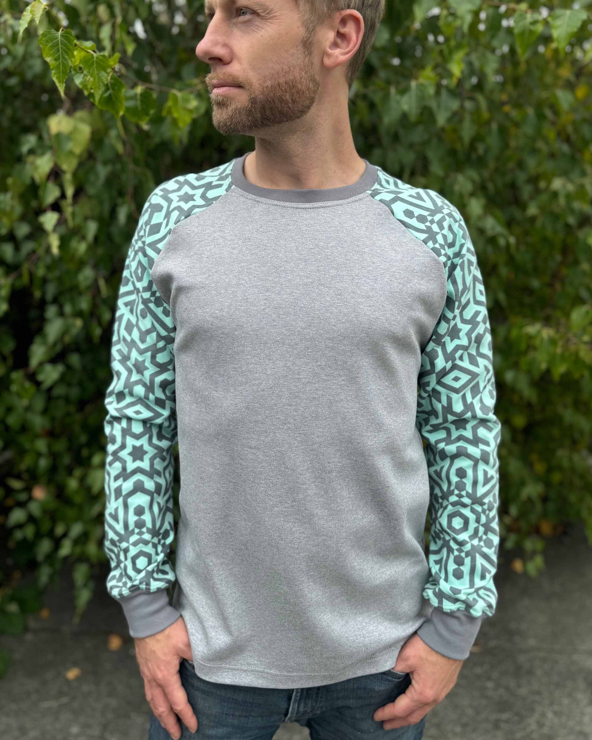 Vortex Long Sleeve Shirt - Organic Cotton Raglan Crew - Patterned