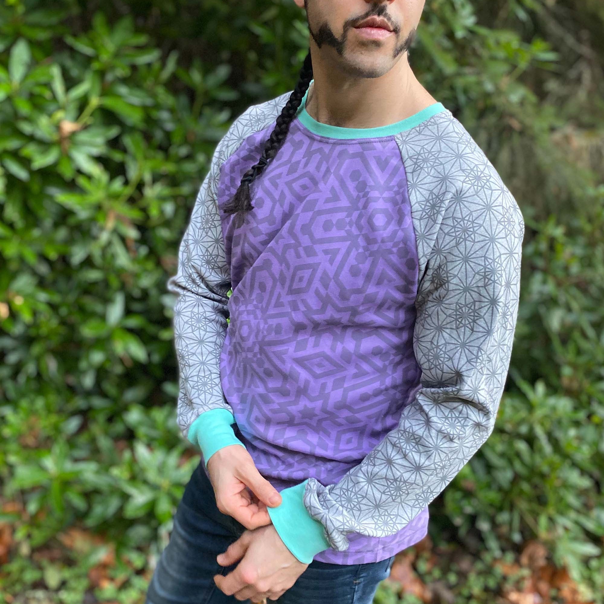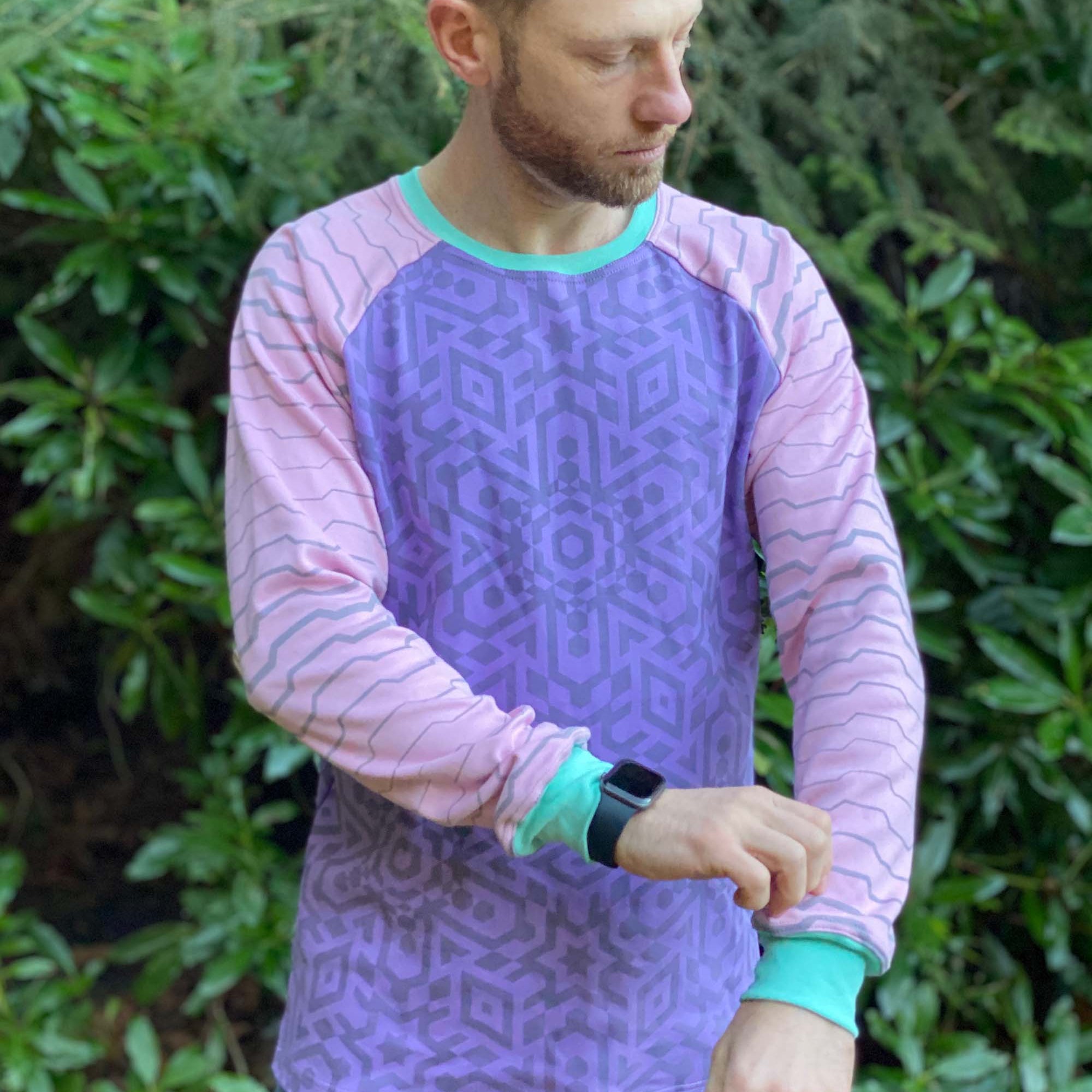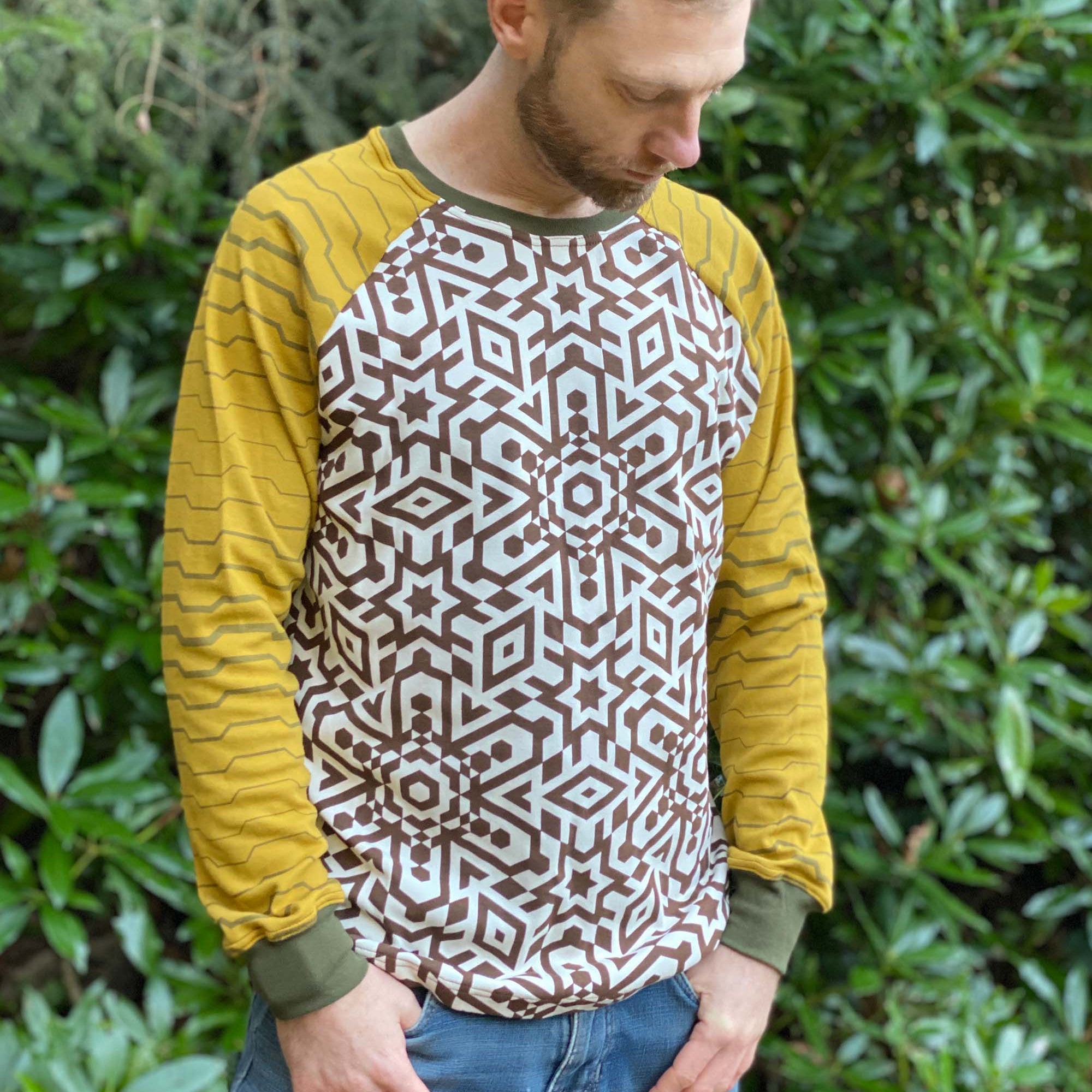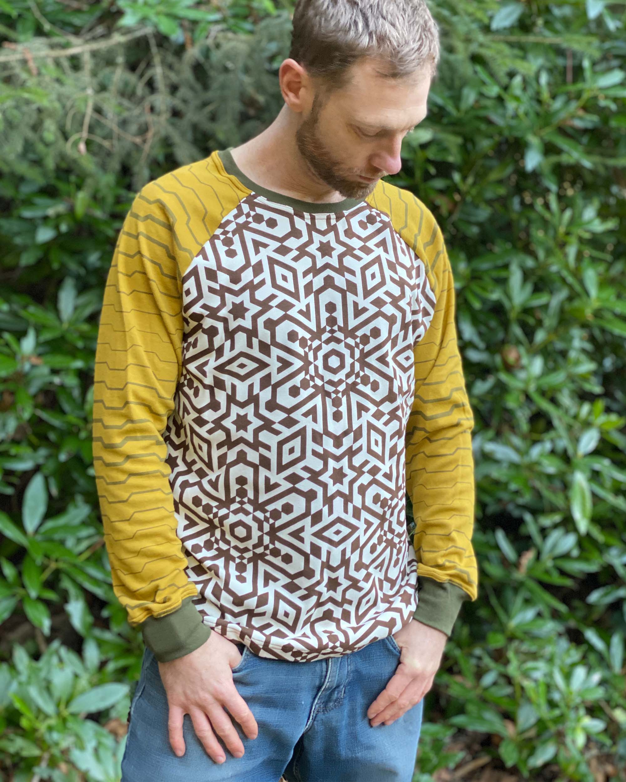 Vortex Long Sleeve Shirt - Organic Cotton Raglan Crew - Patterned