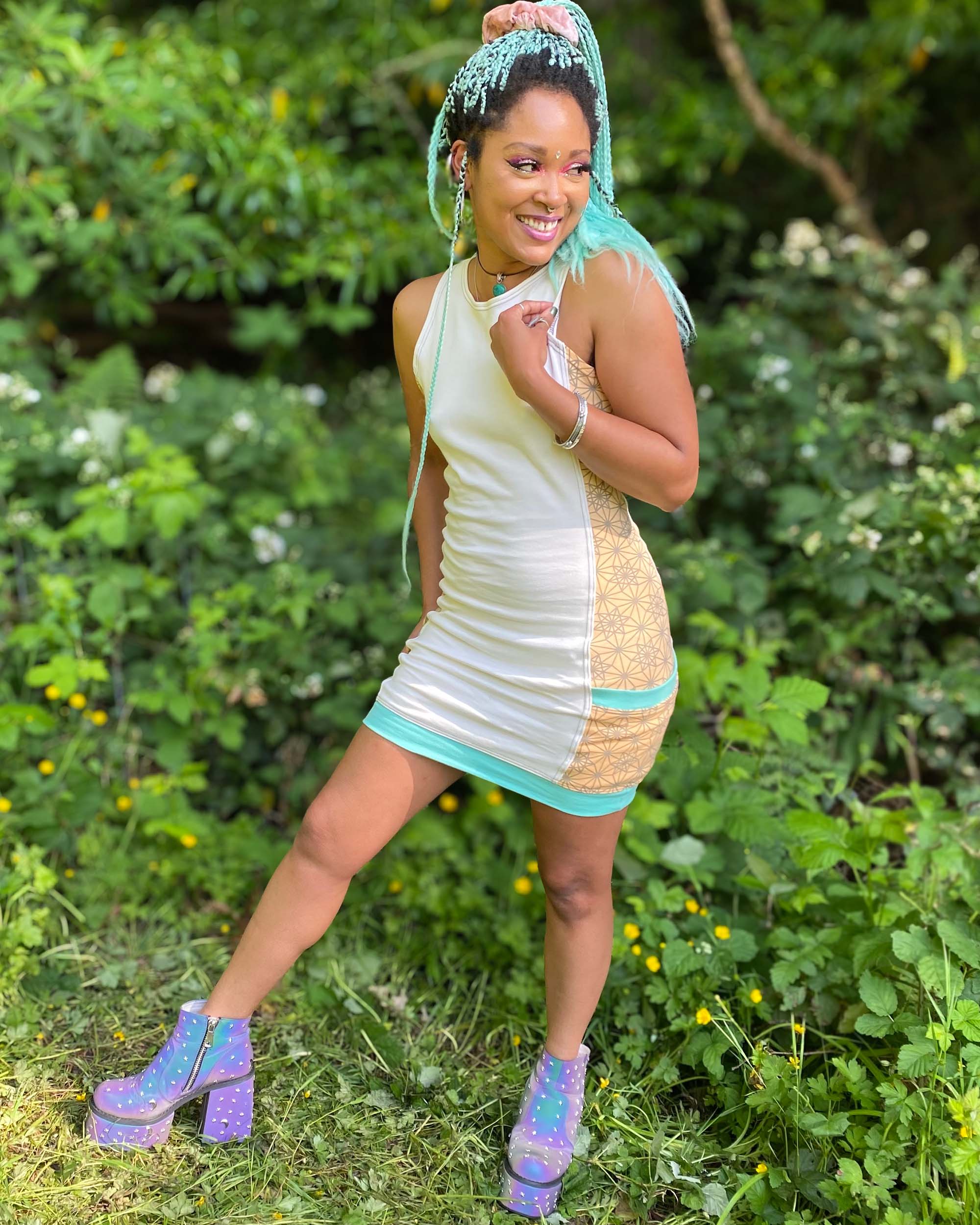 Made in 100% Organic Cotton, this fitted mini dress has two side pockets, and is made with soft interlock knit fabric. Having no hood and being sleeveless, this dress is great for summer festivals or any exciting occasion.