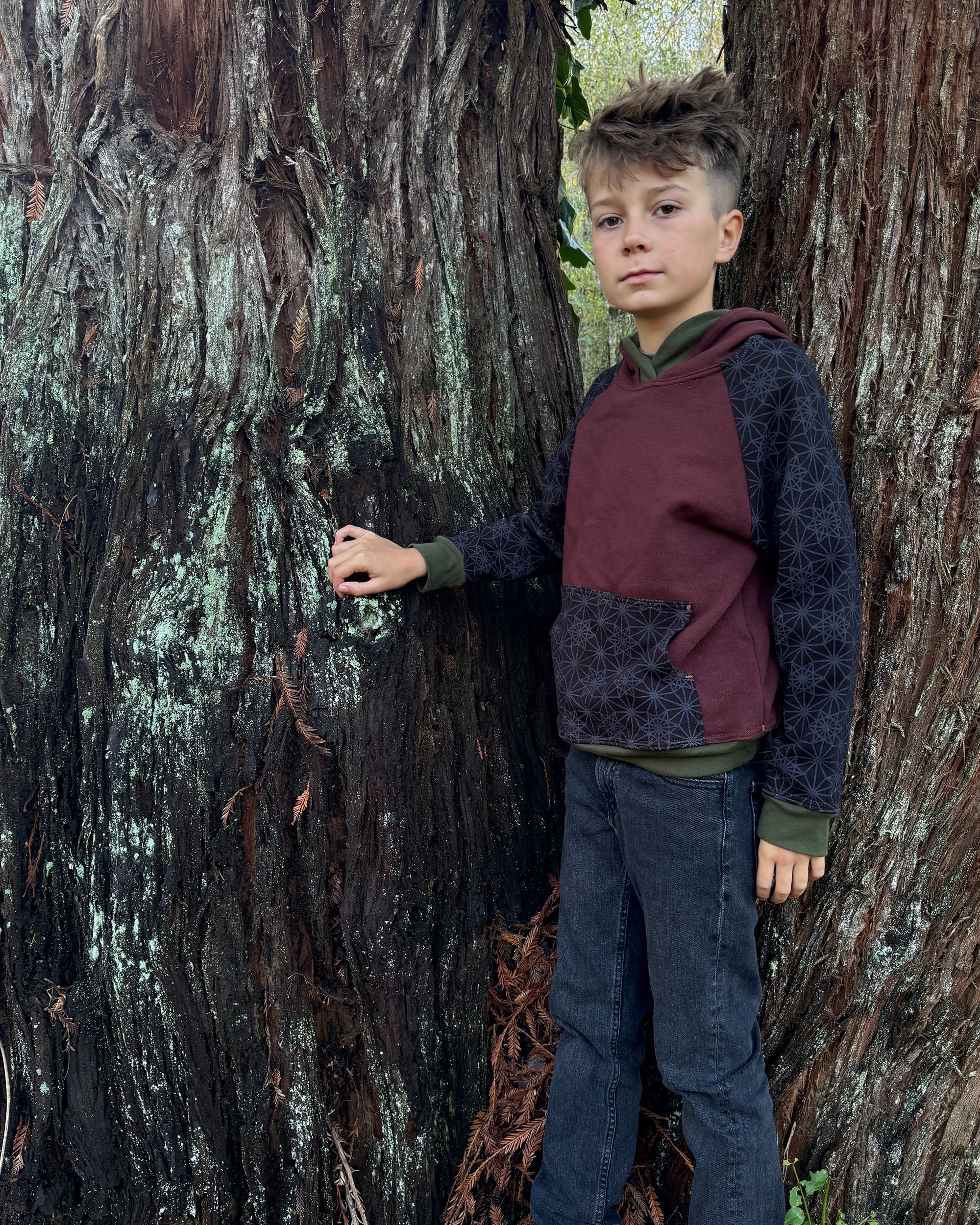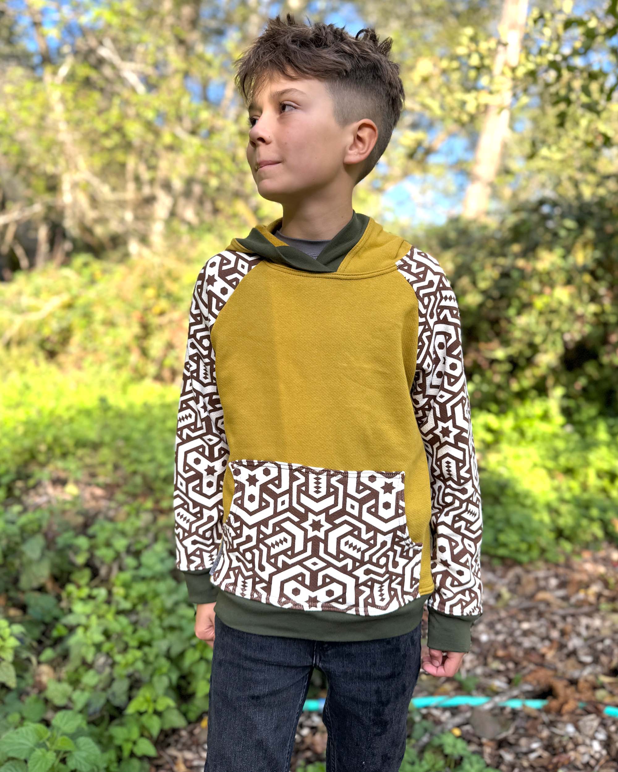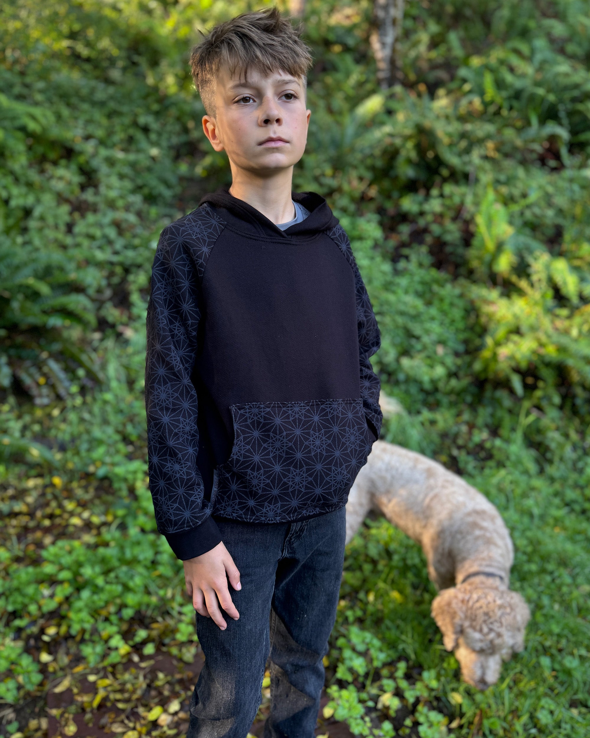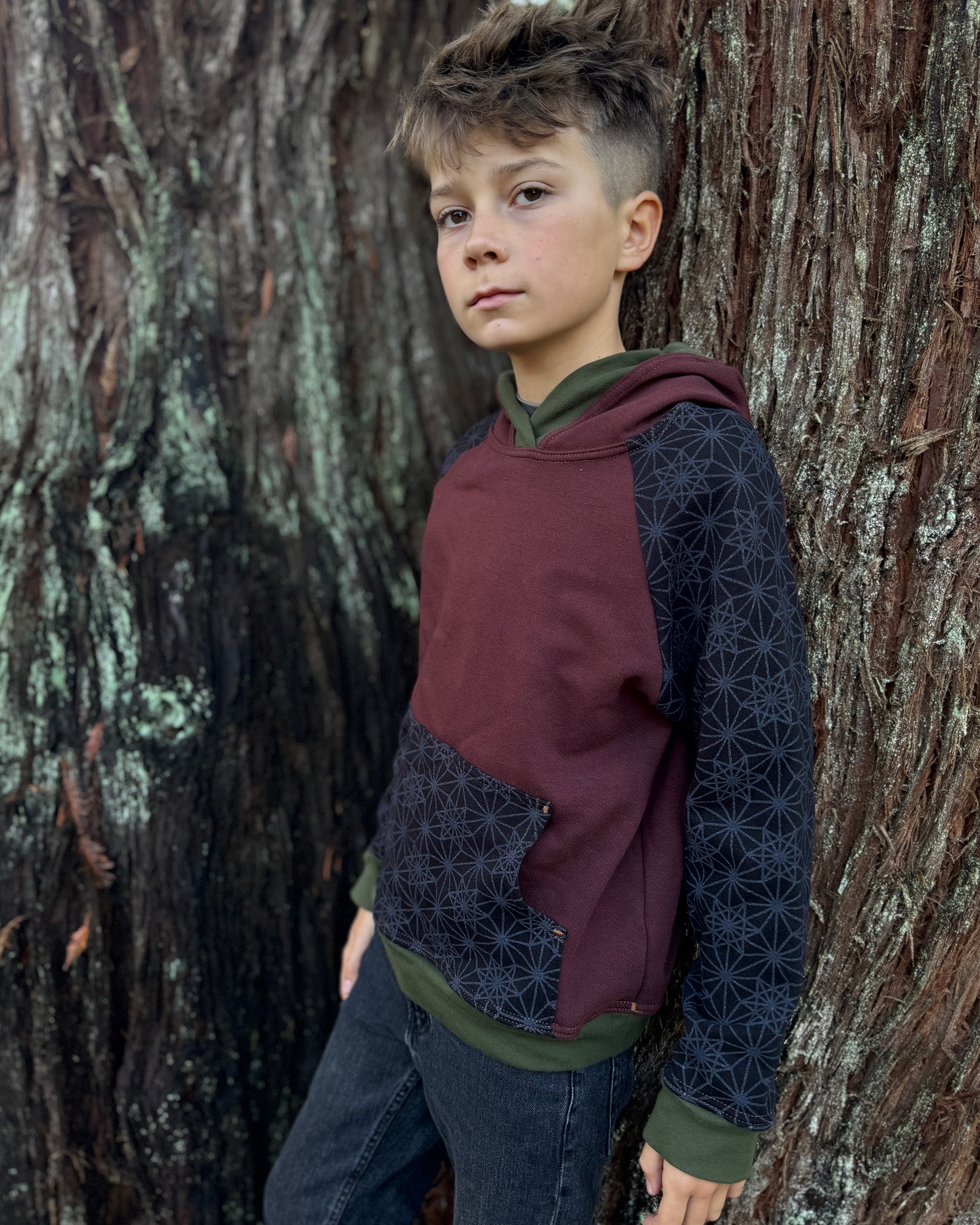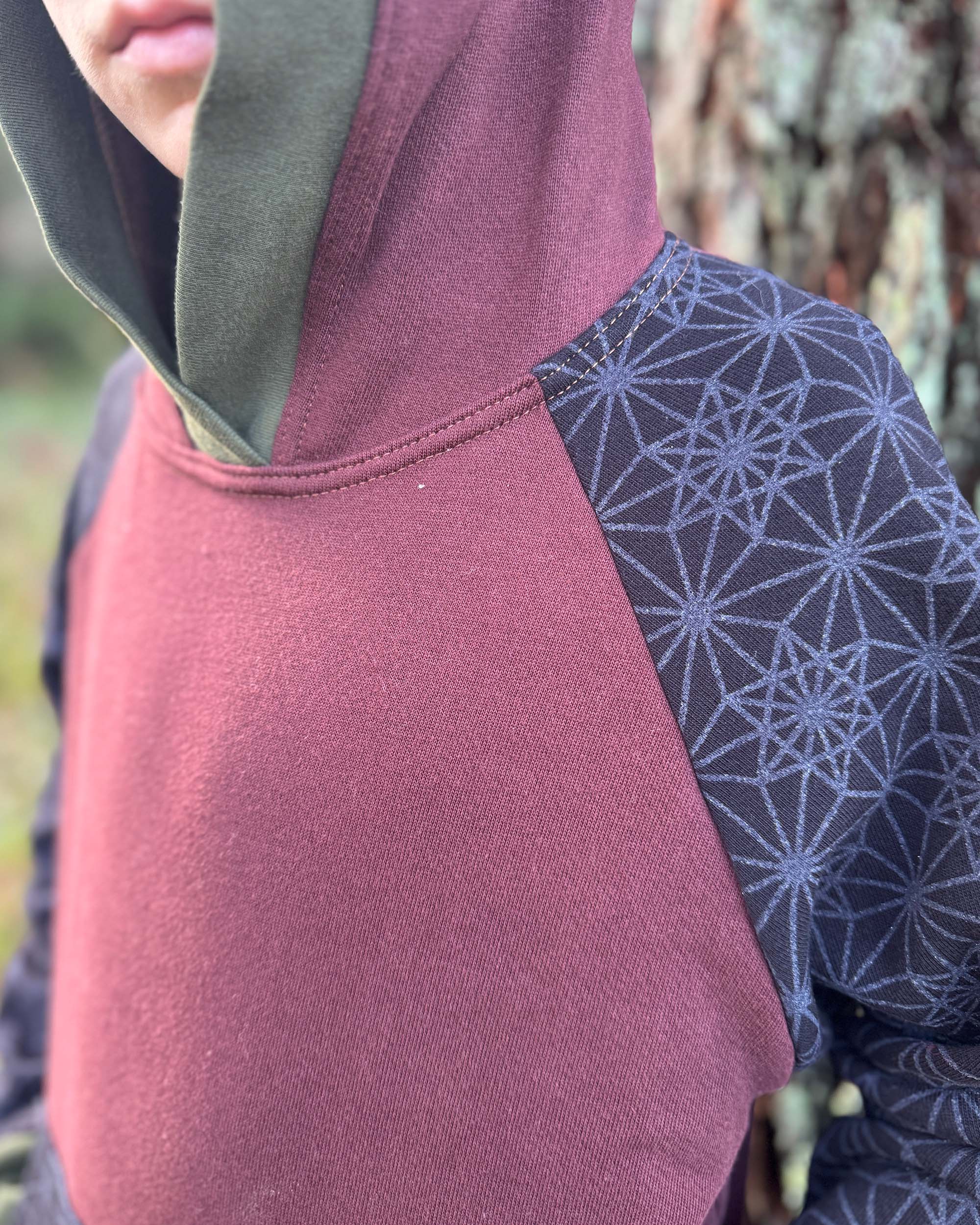 The Youth Habitat Hoodie is constructed in our heavyweight 100% organic cotton fleece fabric. This unisex kids style has a comfy fleece hood with water-based printed sacred geometry sleeves and kanga-pocket.