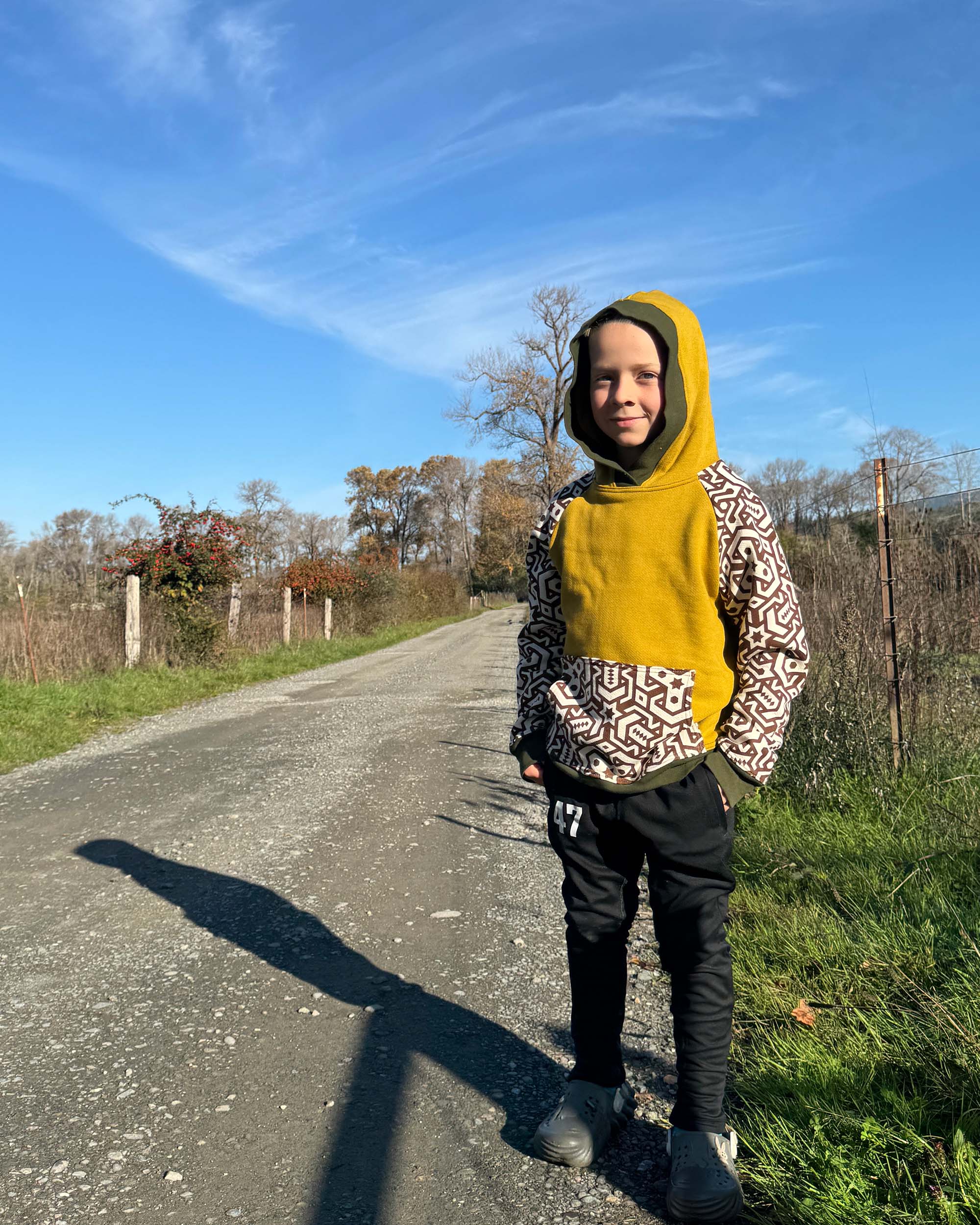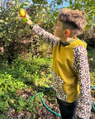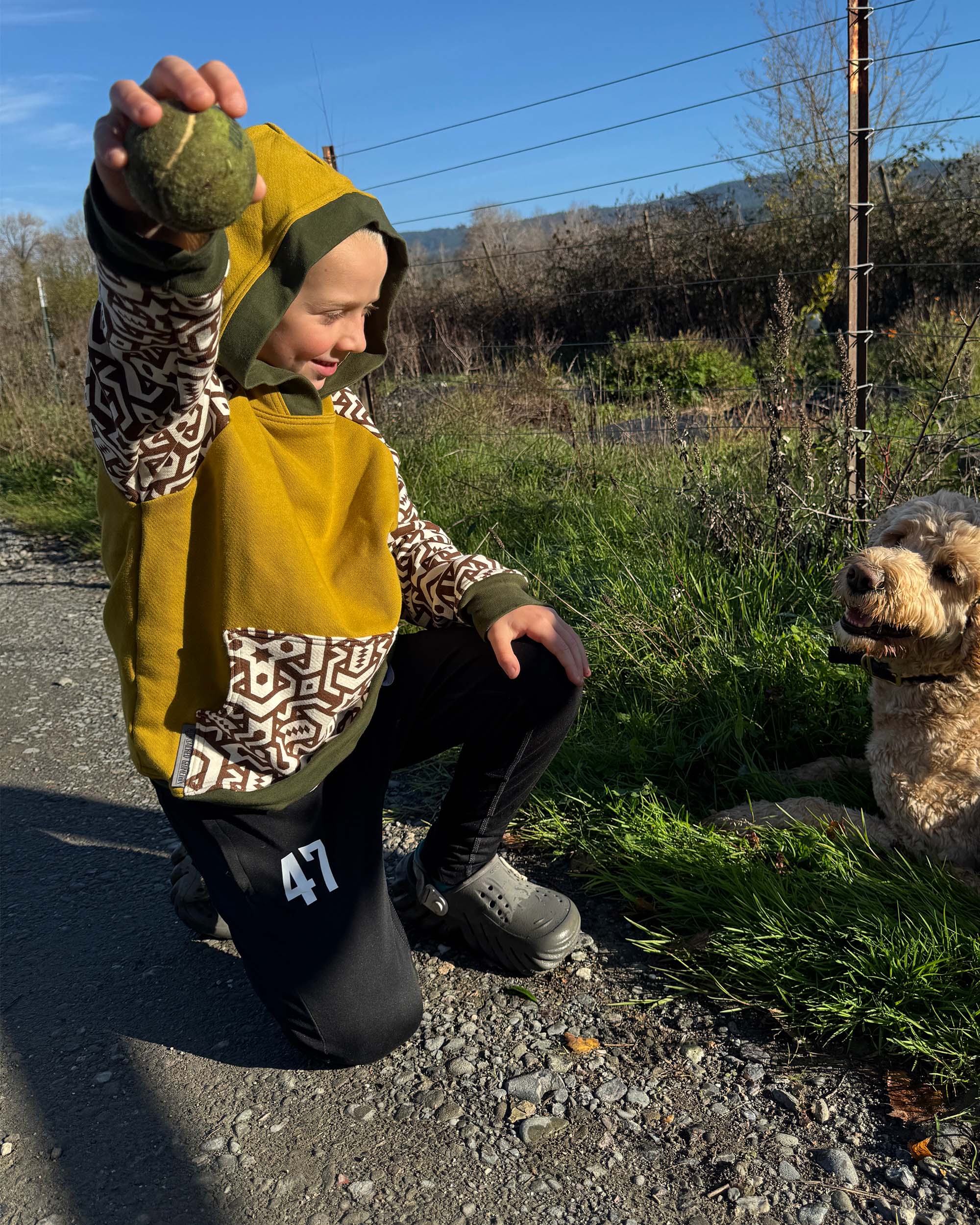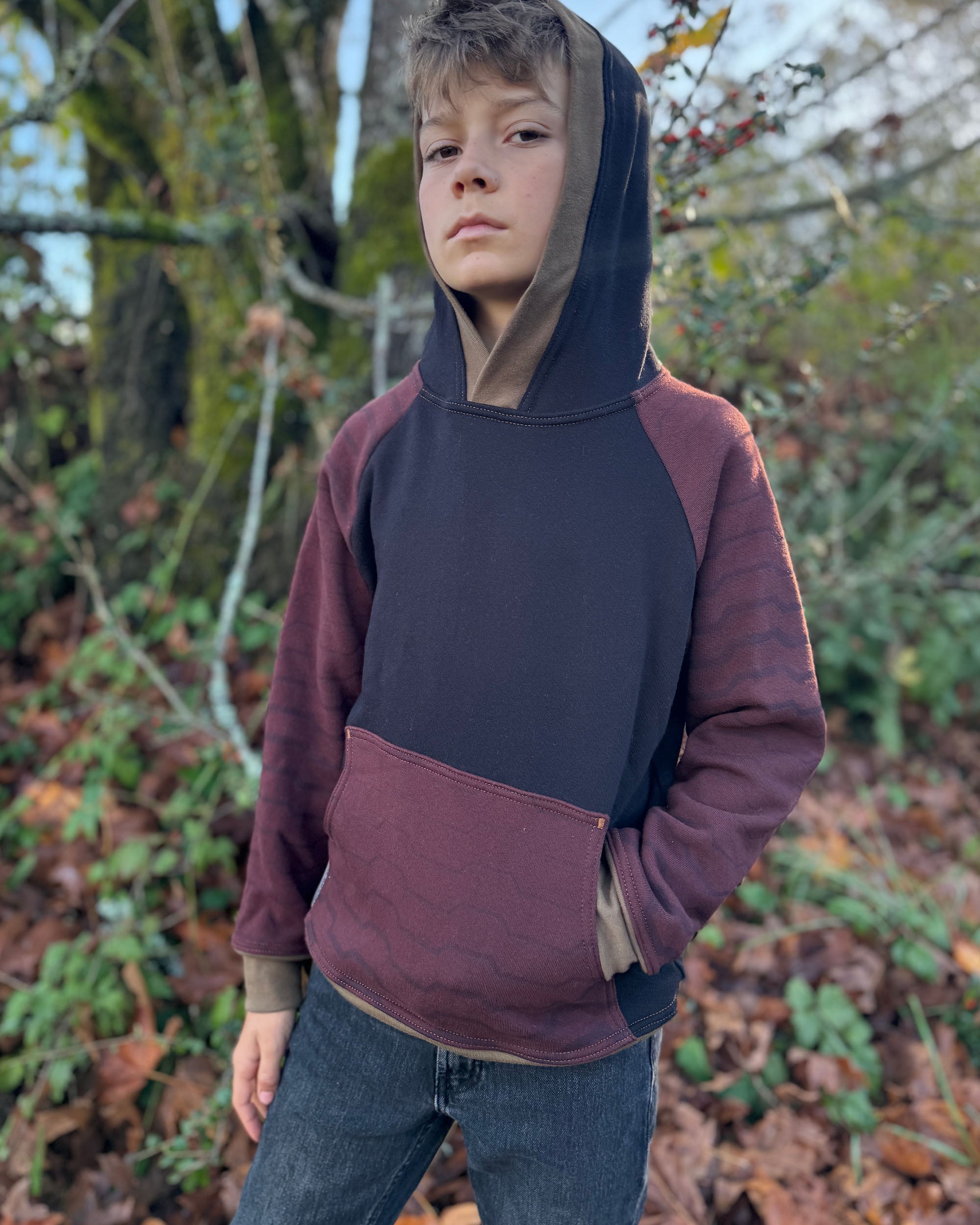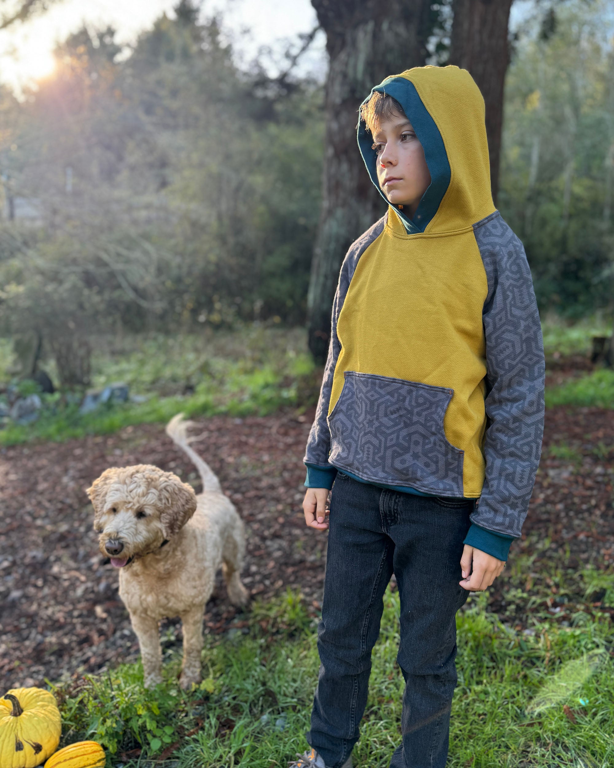 The Youth Habitat Hoodie is constructed in our heavyweight 100% organic cotton fleece fabric. This unisex kids style has a comfy fleece hood with water-based printed sacred geometry sleeves and kanga-pocket.