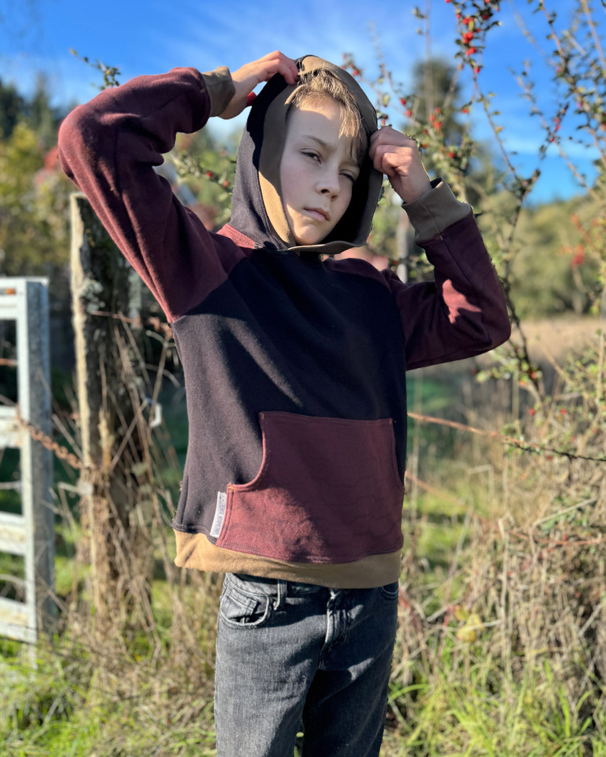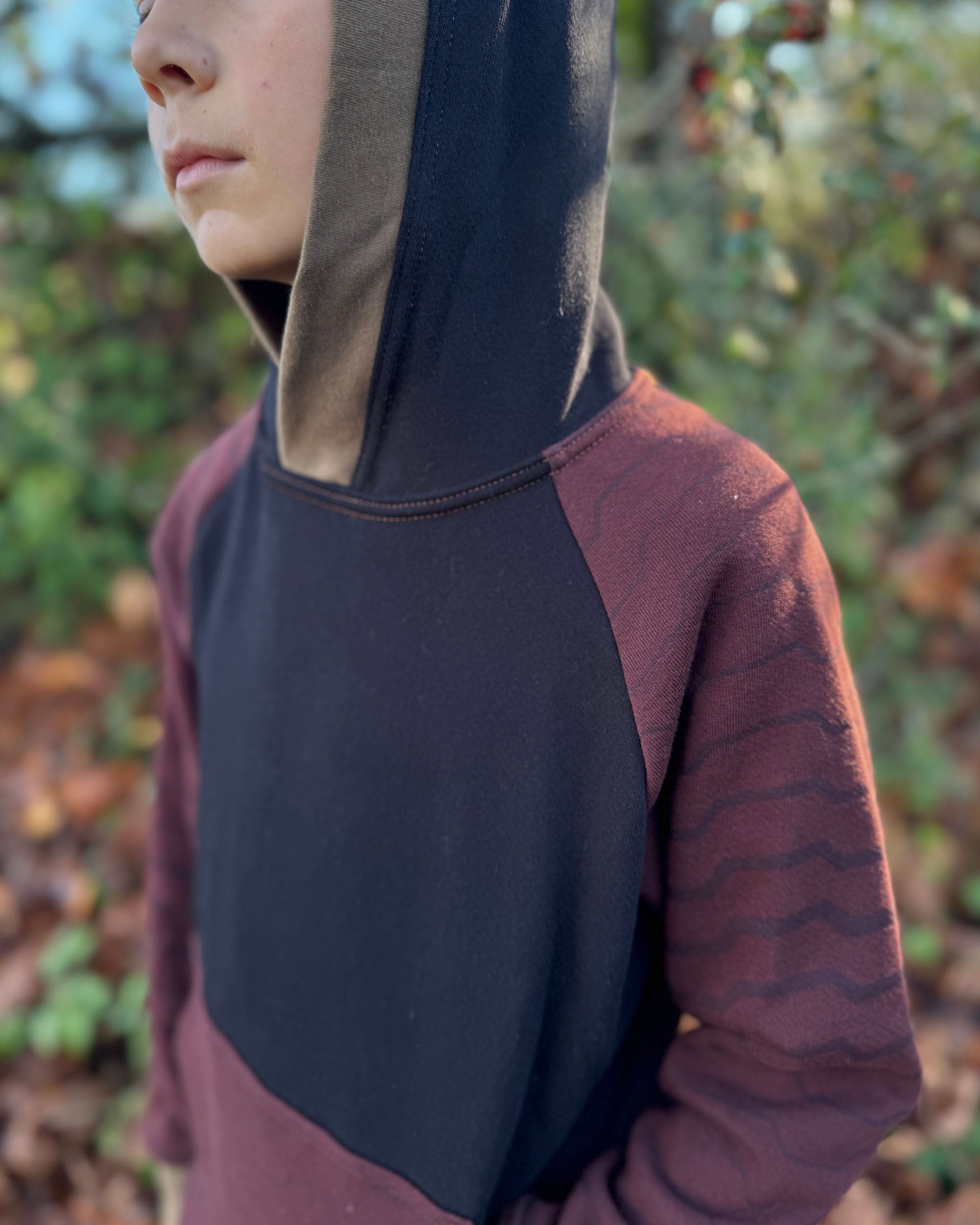 - Hood, cuffs and hem finished baby rib fabric
